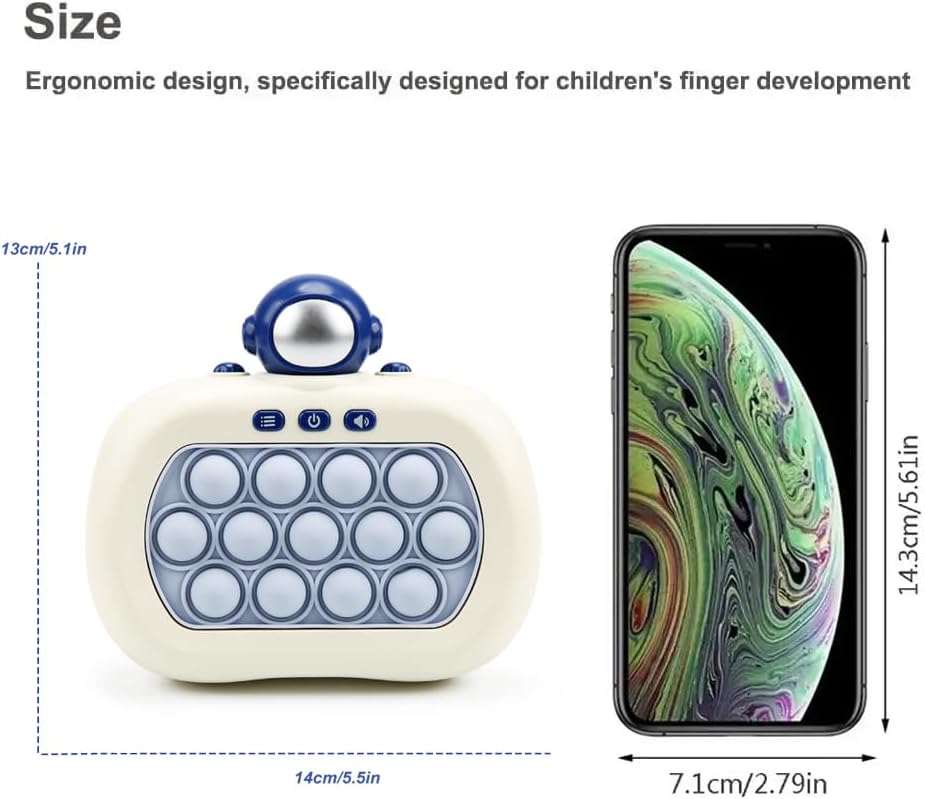 - 【Safe and Durable】The pop fidget toy is made of high-quality silicone and plastic, which is sensitive to the touch, just gently press the bubbles, not easy to damage, and is safe, and durable. The non-slip handle, compact and lightweight, and ergonomic design allow kids to enjoy the game anytime, anywhere, helping them away from phones and tablets, and effectively reducing screen time. Note: The game console needs 5 AAA batteries to be used (the product does not include batteries)