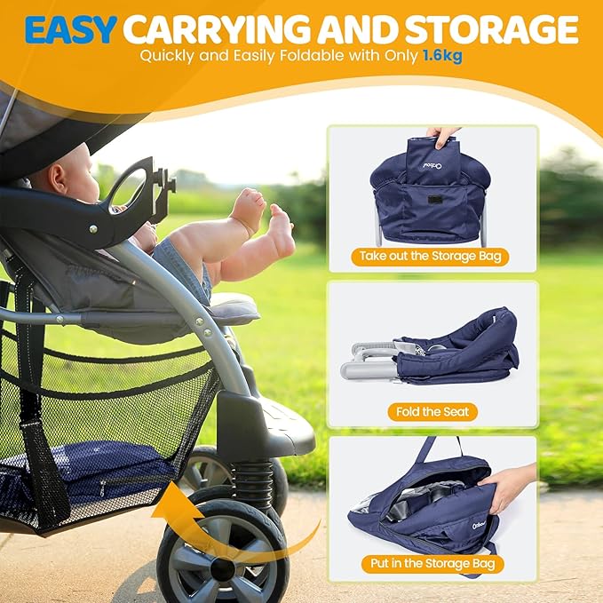 - 👜 𝐆𝐑𝐄𝐀𝐓 𝐂𝐎𝐍𝐕𝐄𝐍𝐈𝐄𝐍𝐂𝐄: Orzbow Collapsible Portable High Chair can be easily and quickly folded into the carrying bag included and taken to anywhere you want without taking lots of space and energy, which is fairly convenient for daily life or family union.