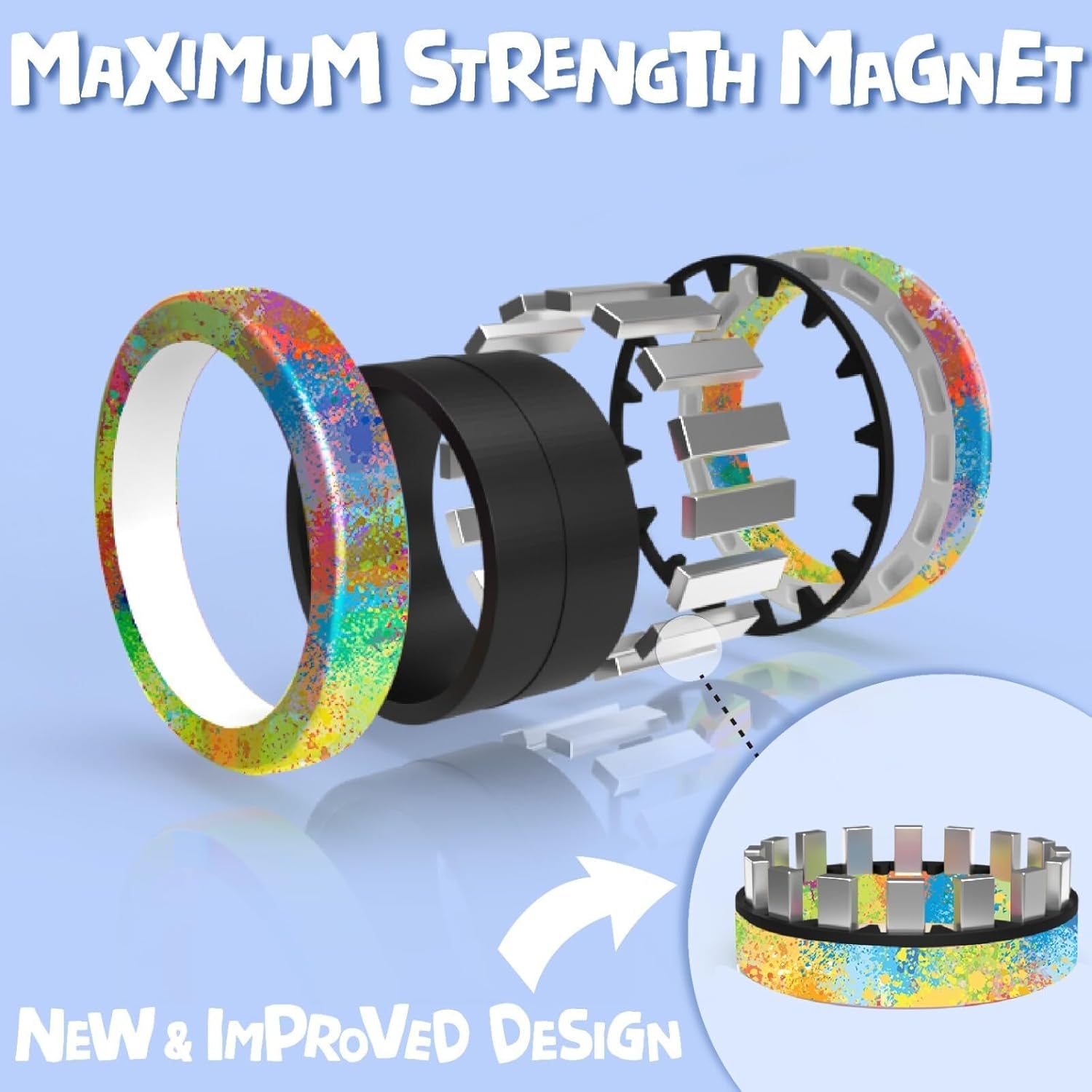 - Ultimate Stress Relief & Entertainment: Discover ultimate stress relief and endless fun with our 3-pack of magnetic fidget rings. This set includes 3 vibrant rainbow magnetic rings with a new matte finish, designed to captivate and soothe.