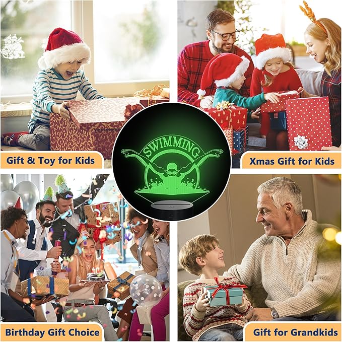 Swimming Gifts for Boys Girls, 3D Illusion Lamp, 3D Swimming Night Light with 16 Colors Remote and Touch Control, Swimmer Natator Decor for Kids Room, Girls Birthday Gifts