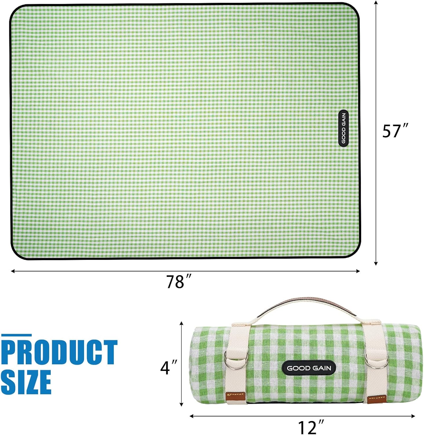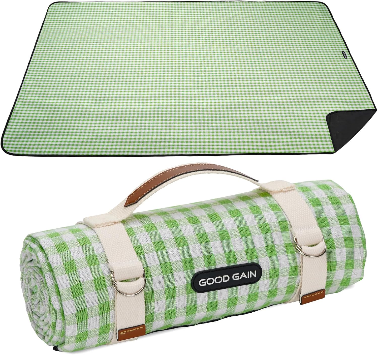 G GOOD GAIN Picnic Blankets Outdoor Extra Large - Waterproof Picnic Blanket with Carry Strap | Machine Washable Picnic Mat with Sandproof Backing for Park, Grass, Camping, Hiking, Concerts (Lime)