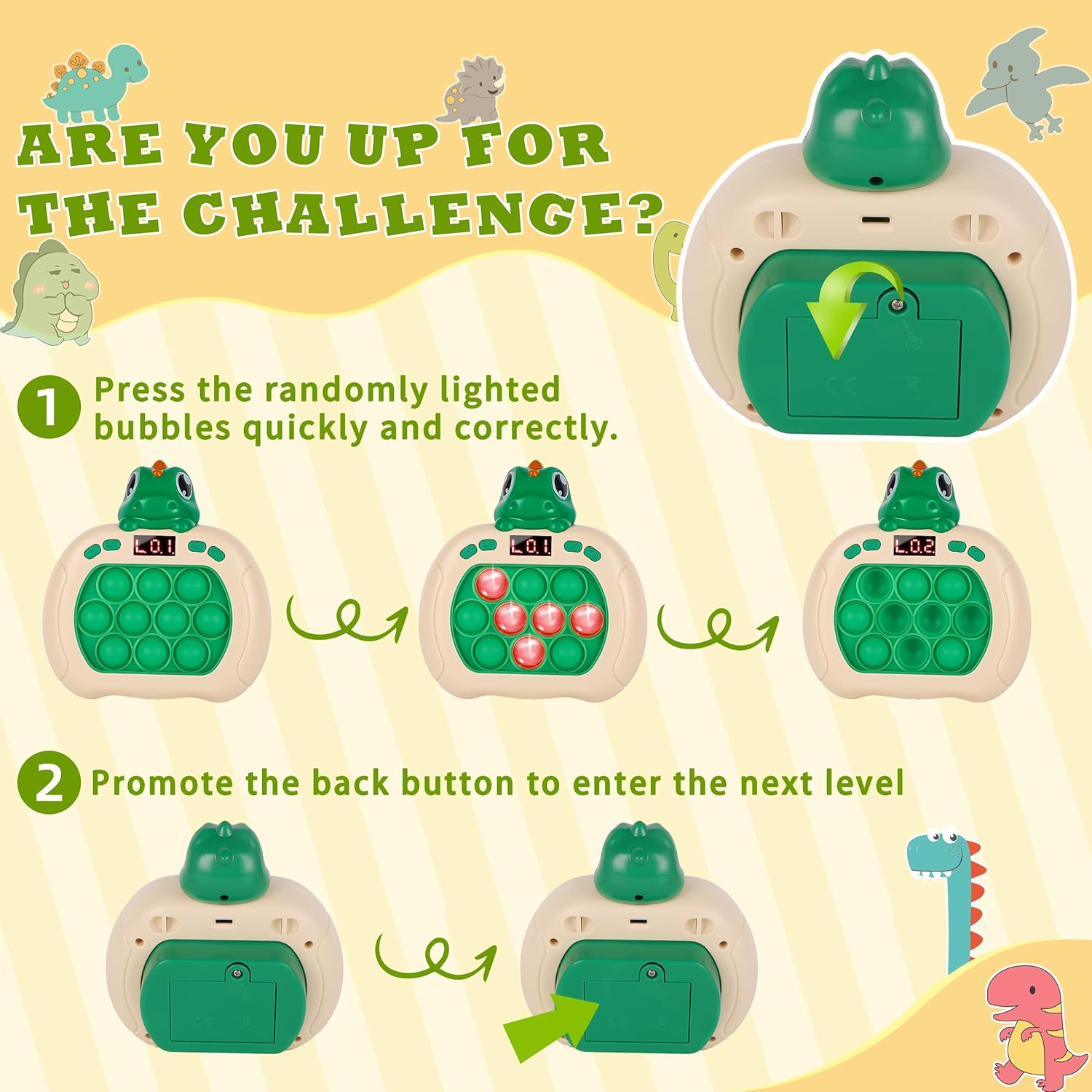 Upgraded Fast Quick Game Pop Bubble Up Toys for Kids, Funny Toys with LED Screen for Kids 3-12 for Girls and Boys Bubble Stress,Handheld Puzzle Game Sensory Toys(Batteries Included) (Green Dinosaur)