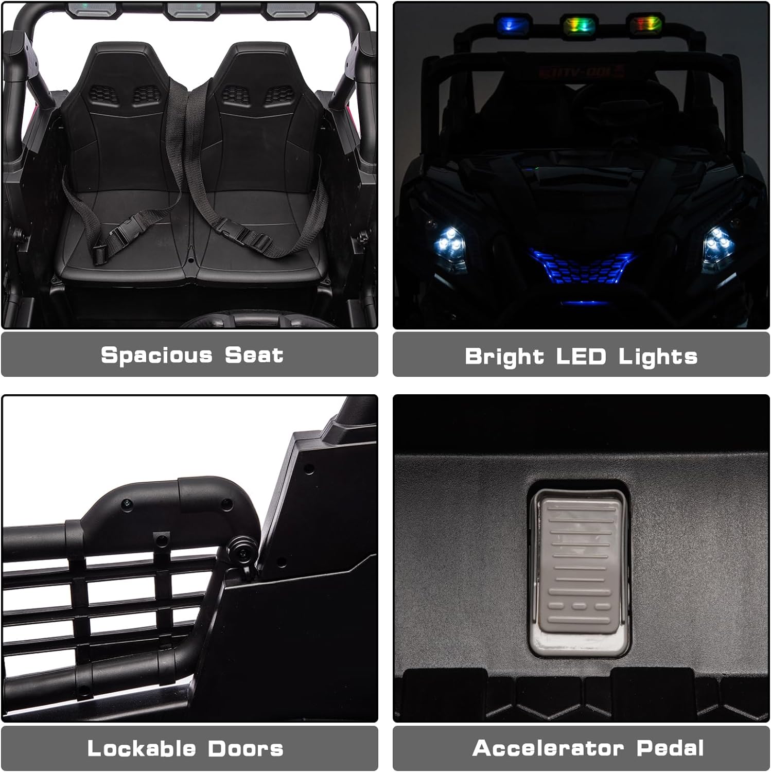 - 【Safety is Priority】Equipped with 4 all-terrain wheels, it is more stable. If your kid is too young to drive, the parent remote control mode allow you to control the car to avoid potential dangers. When the ride on car starts, the soft start system will work to avoid the risk of sudden acceleration or braking.