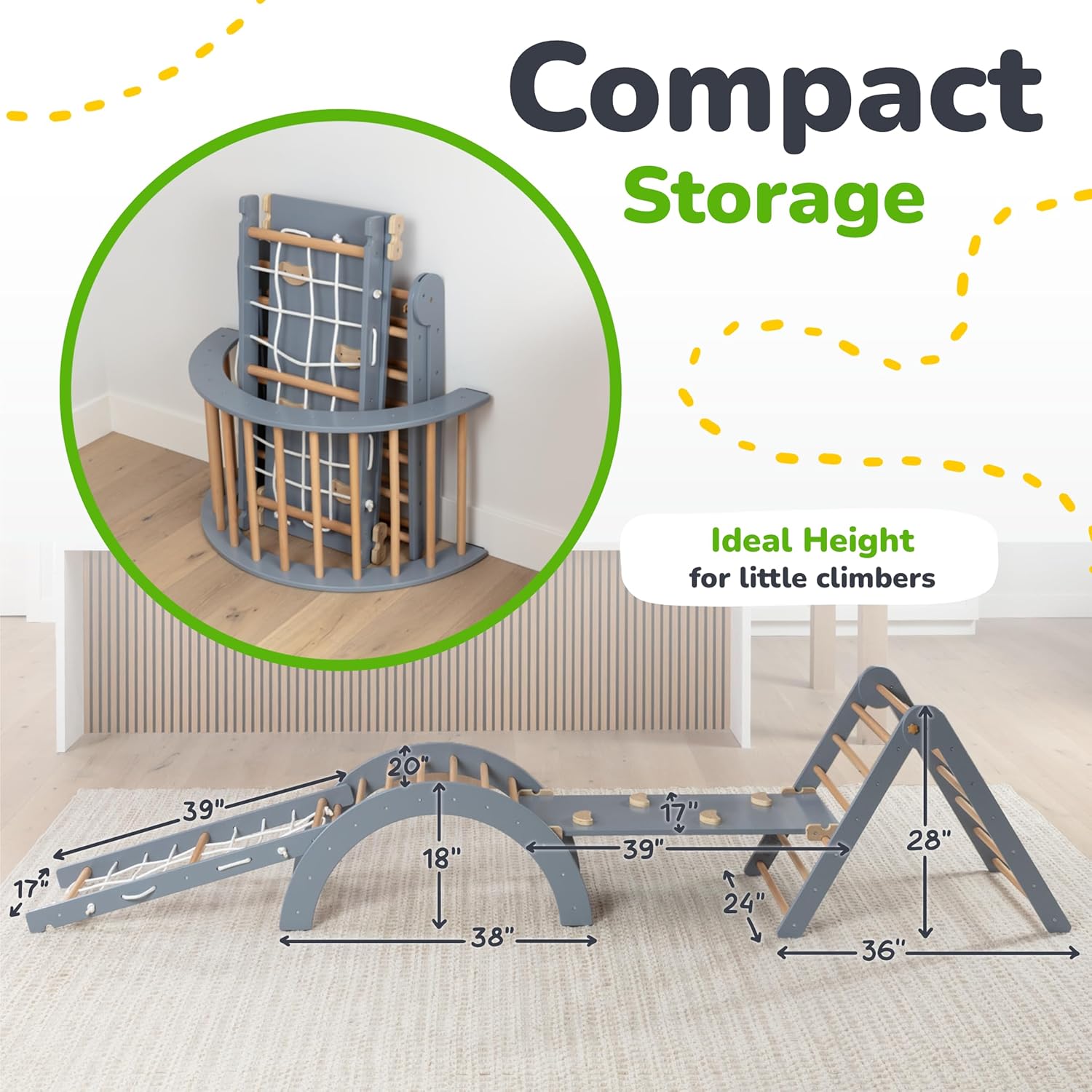 - ENDLESS FUN: Keep little ones entertained for hours by configuring the Pikler, Arch, Slide and Rope Climber in different ways to create their indoor play gym. They can hone their motor and coordination skills and burn off that toddler energy.