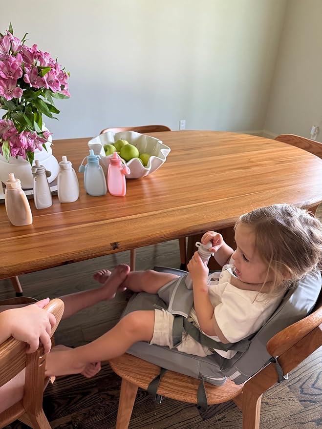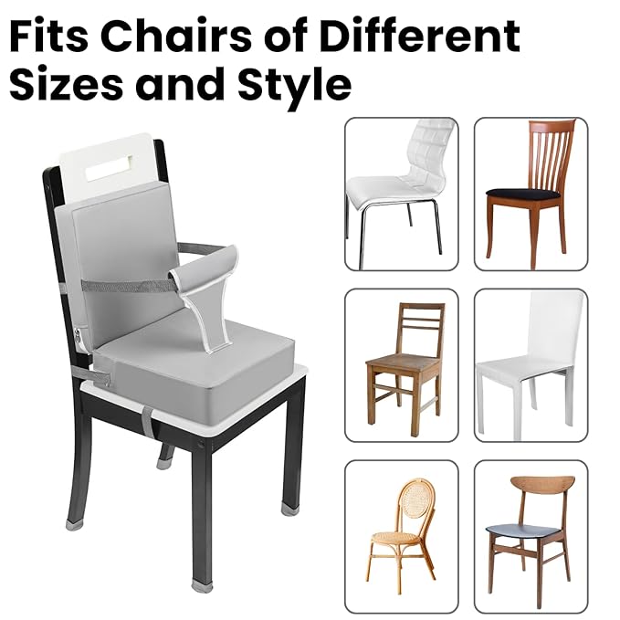 - Safety & Non-Slip: Safety and stability are our priorities! The non-slip bottom and adjustable straps prevent the booster seat from sliding, keeping your child secure during mealtime.