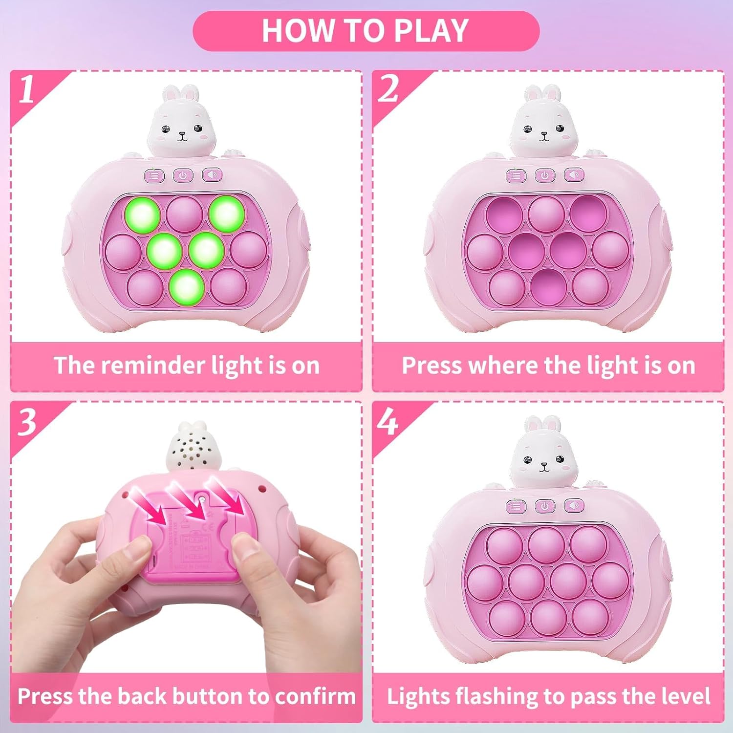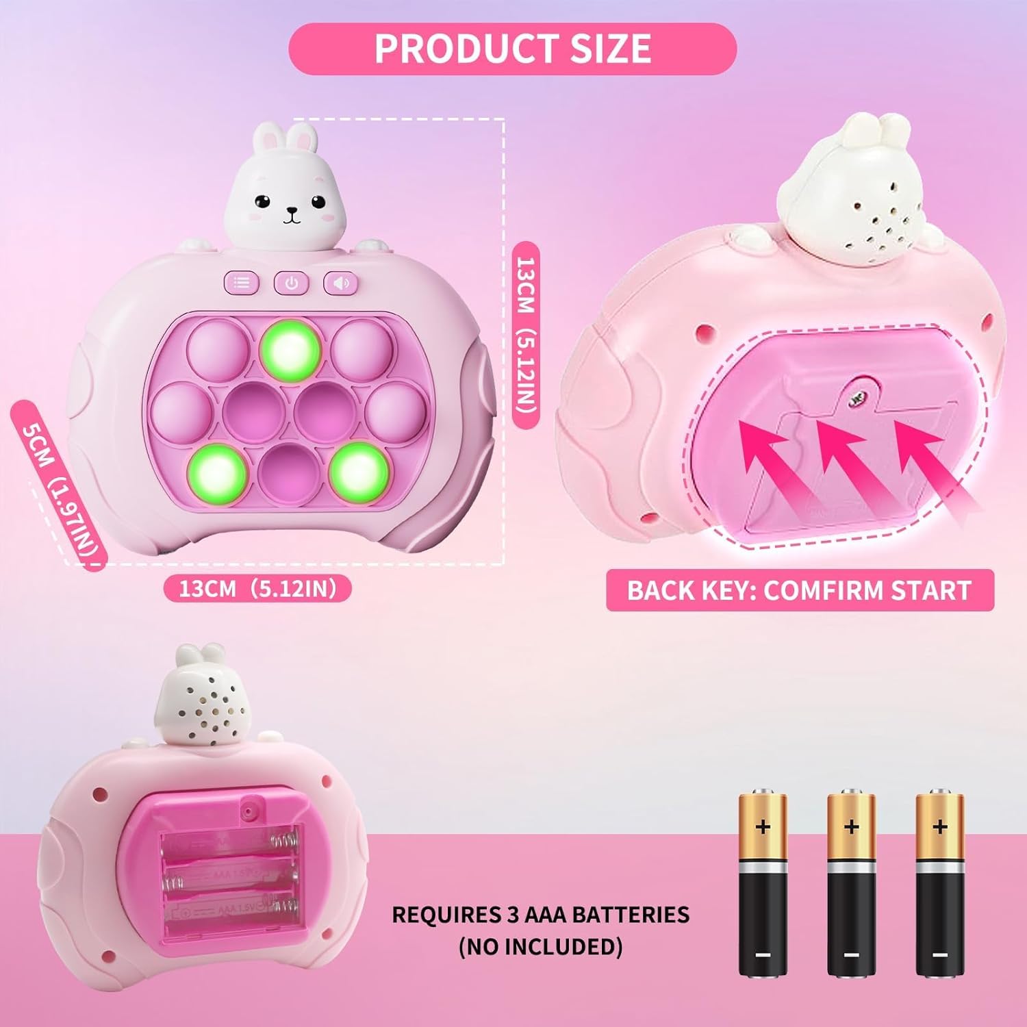 Pop Game Light Up Fidget Toy, Quick Push Bubble Game, Decompression Breakthrough Puzzle Pop Game Machine, Multiple Game Modes Toy for 3+ Years (Rabbit)