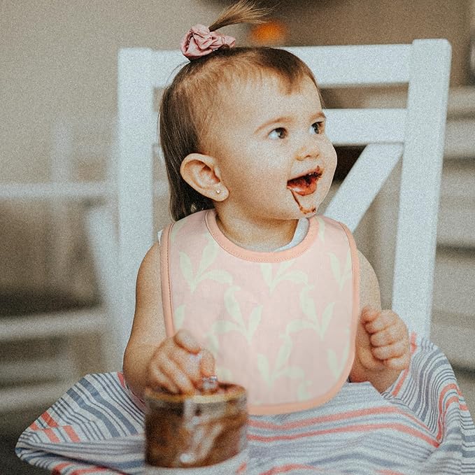 - SOFT & SUPER ABSORBANT — Front is soft organic cotton / Back is polyester fleece for absorbency. Thick material protect & keep your drooling/teething baby girl boy dry from all dribble and spit ups. No more wet clothes! Bib with snap stay in place and your baby won't be able to pull them off.