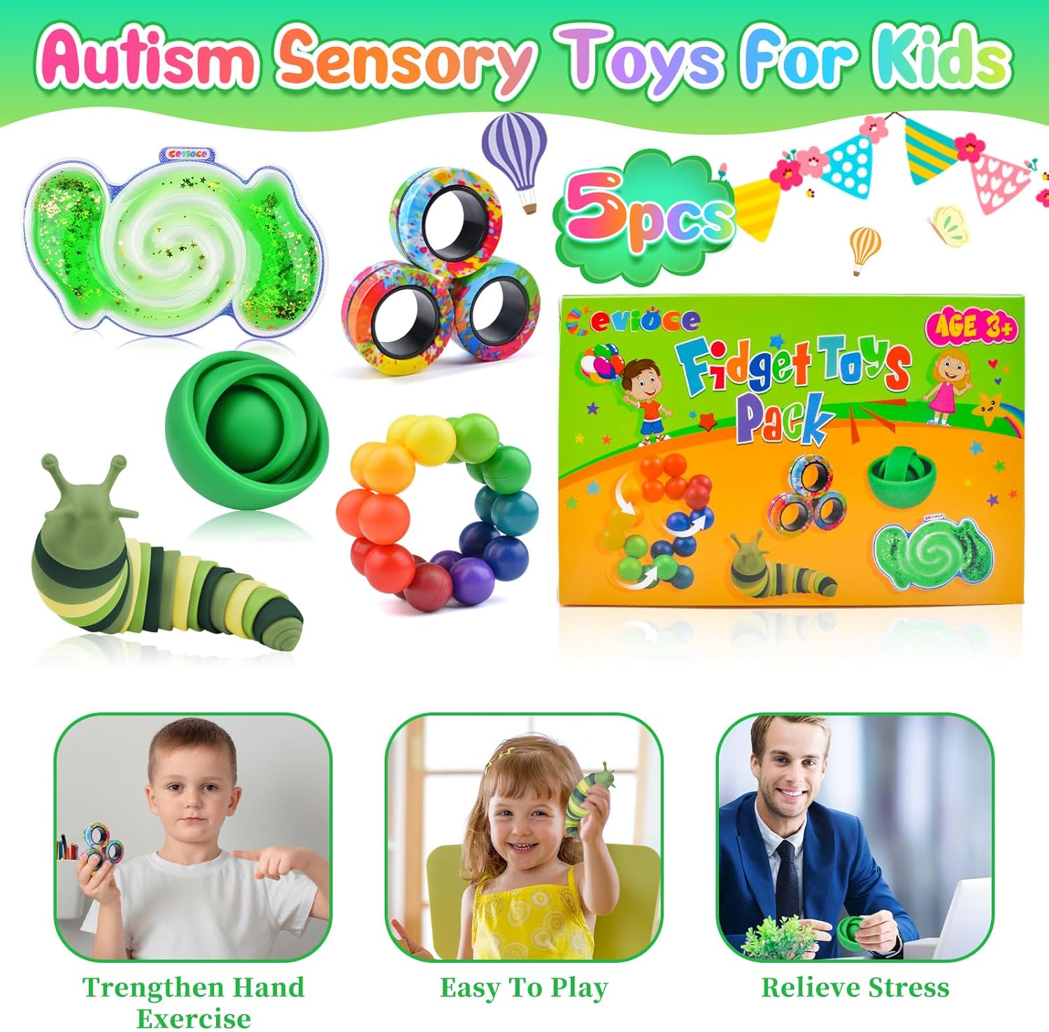 Cevioce Sensory Toys 5 Pcs Fidget Toys Bulk,Christmas Basket Stuffer Present Party Favors,Autism Sensory Toys for Autistic Children,Toddler Stress Relief Toy for Boys Toddlers Girls Teens for Age 3+