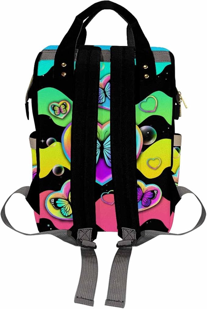 D-Story Custom Diaper Bag Baby Backpack Expandable For Mom Baby Mommy Daypack Expandable For Mothers Day Gift For Mothers Day Gift Custom Newborn Bags, Rainbow Butterflies