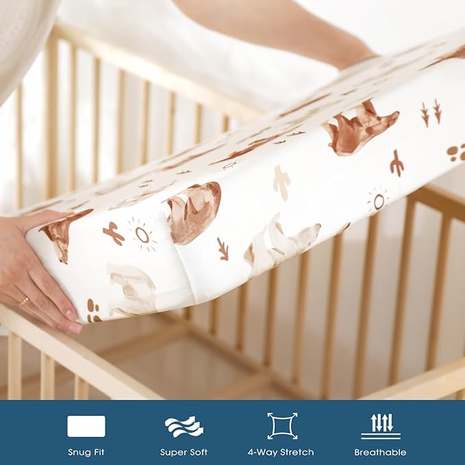 Stretchy Ultra Soft Jersey Knit Fitted Crib Sheets Set 2 Pack,Universal Fit All Standard Crib Mattress Pads Safe and Snug, Crib Fitted Sheet for Boys and Girls, Cute Animals Print