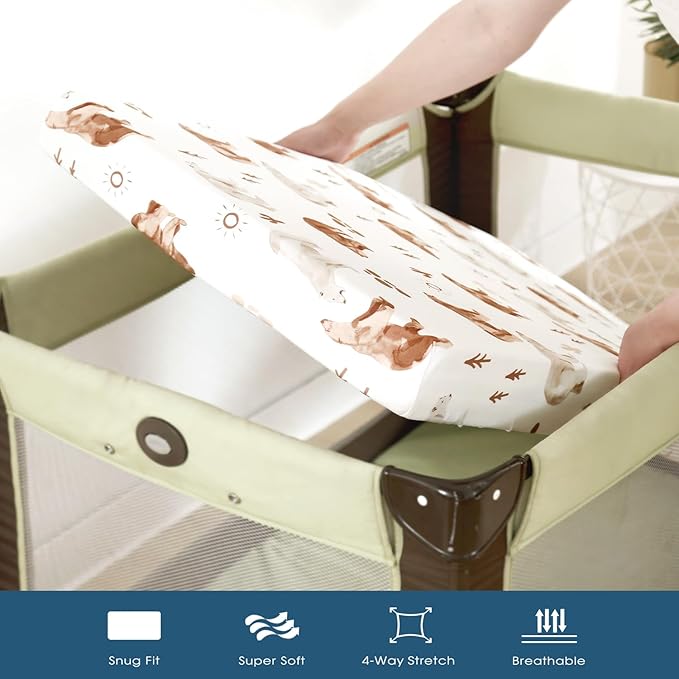 - Ultra Soft & 4-way Stretch: Made of 100% high quality soft stretchy jersey knit fabric. GRSSDER mini crib sheets offer a breathable, sweat-absorbent tee shirt like feel for exceptional comfort, providing your little ones a safe and to stay in place throughout the day.
