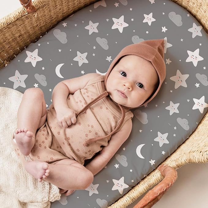 - BREATHABLE & COMFORTABLE BASSINET SHEETS:Crafted with breathable fabric, these bassinet sheets help regulate your little one’s temperature, keeping them cool in summer and warm in winter. Perfect for nurseries, daycares, or home use, these bassinet sheets ensure a comfortable sleep surface for your baby.