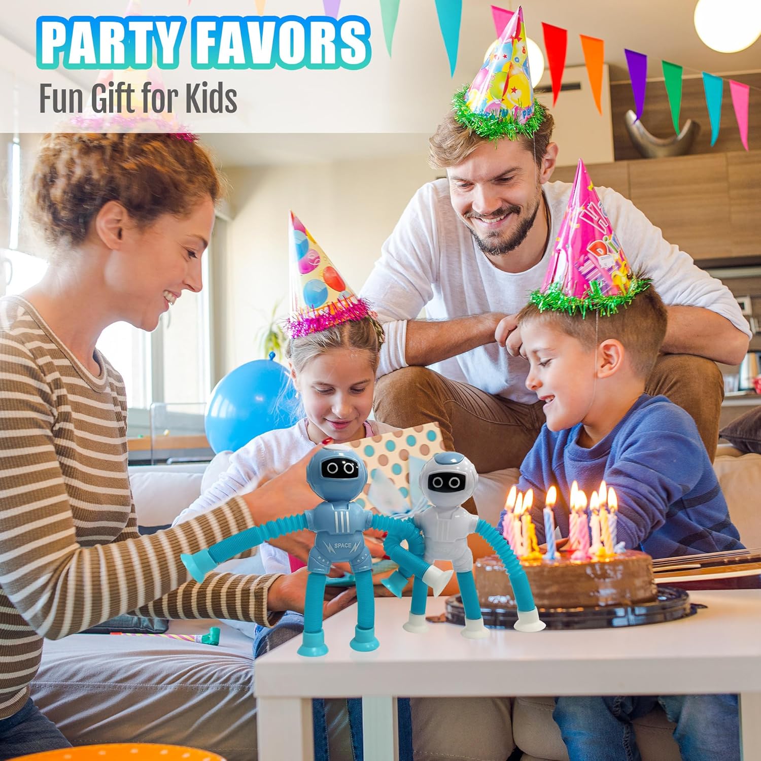 Easter Basket Stuffer Gift for Toddlers Kids Robot Sensory Travel Toys 4Pcs for Boy Year Old Ages 3 4 5 6 7 8 9, Airplane Travel Activities Suction Autistic Valentine Pop Tube Autism Fidget Toys