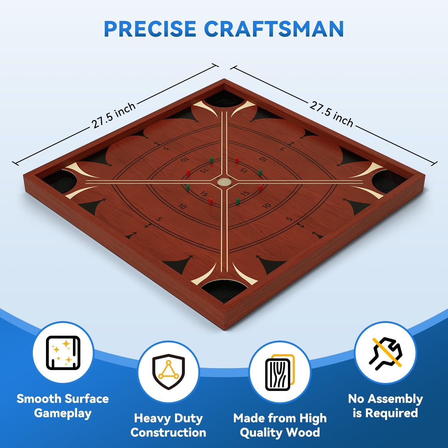 Board Game Set for Adults Family Night, 27.5 Inch Crokinole/Backgammon/Bowling Game/Tabletop Flicking Game with Discs, All in One Carron Board Game Set