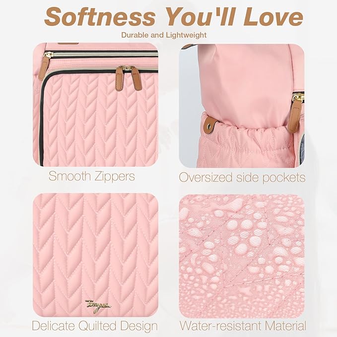 - Quilted Materials:Tonyeee diaper bag with 3D herringbone nylon quilting,achieve a perfect blend of practicality and fashion. While studded feet in the bottom keep the bag clean and off the ground