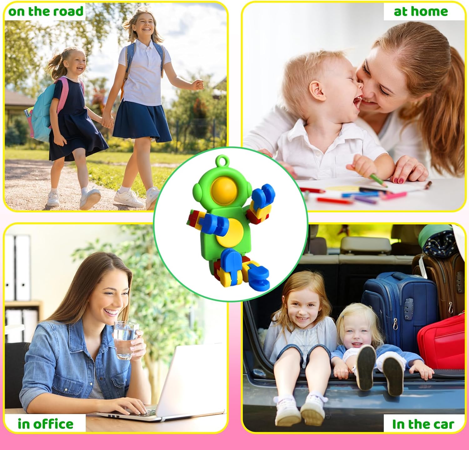 - PACKAGE INCLUDES:20 pcs astronaut fidget spinner,4 colors of white green pink and yellow,bright colors and cute shapes will attract children's attention and love;with deformable design,you can change the shape according to your imagination,also can be used as a key chain