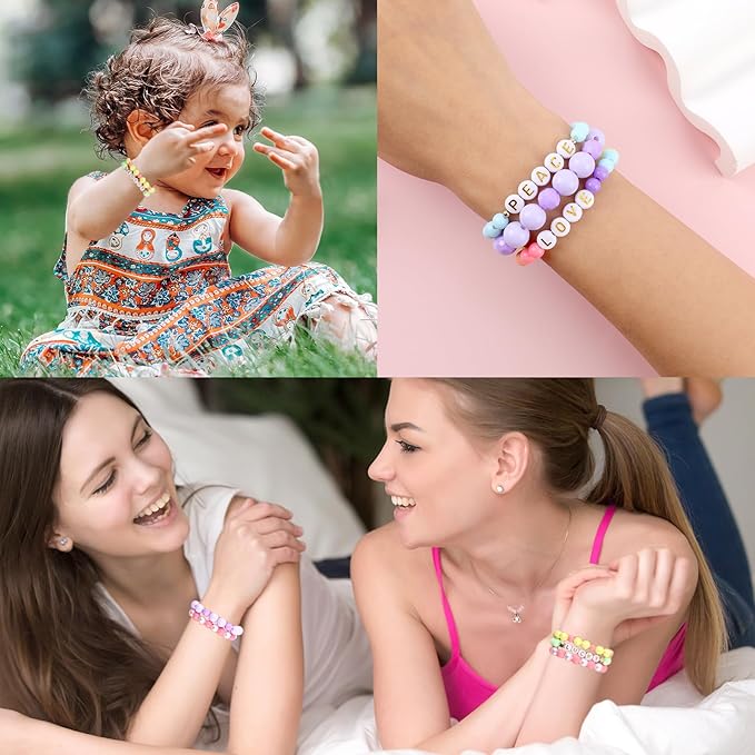- 🌈【JEWELRY MAKING KIT】MAKERSLAND 1100+ pieces of cute acrylic pastel beads kit include 360 pcs of 6mm round beads, 144 pcs of 8mm faceted round beads, 126 pcs of 8mm round beads, 72 pcs of 10mm round beads, 190pcs of 7mm letter beads, and 50pcs of 7mm pearl. The plastic beads kit comes with 6 rolls of colorful elastic strings, a roll of white elastic strings, 30 pcs 6mm star spacer beads and many 3mm round spacer beads for making jewelry accessories.