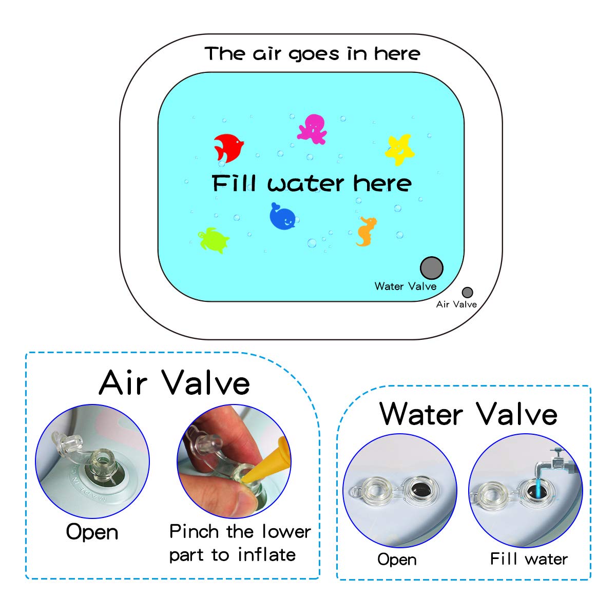 - 【Tips & Guaranteed】: Suggest ventilating and smell removing before using, as water pad was in unventilated space for a long time may have a slight odor, this is a normal situation.As long as it is opened and placed in a ventilated place, the smell will quickly reduce and the smell will disappear after filling with water. All materials are environmentally friendly, you can trust your baby to use.