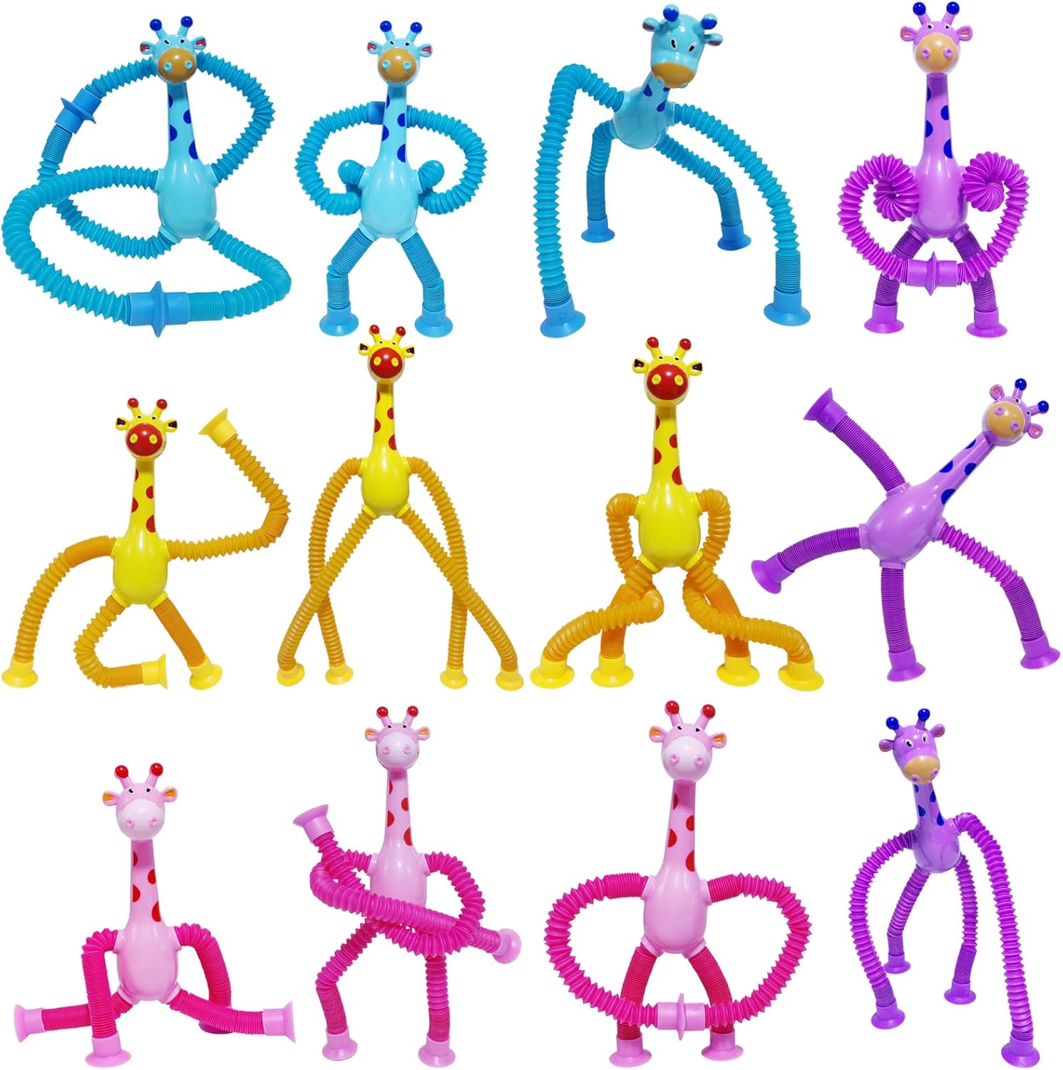 16Pcs Telescopic Suction Cup Giraffe Toys, Suction Pop Tubes Giraffe Sensory Toys, Pop Fidget Toys for Toddler Travel, Easter Basket Stuffers Party Favor Birthday for Kids Boys Girls