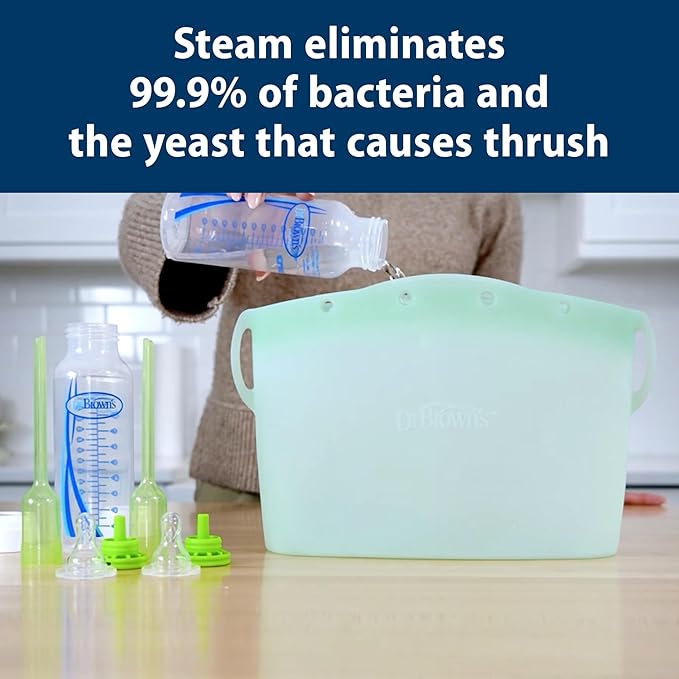 Dr. Brown's Microwave Steam Sterilizer Bag for Baby Bottles, Breast Pump Parts & Other Toddler Accessories, 100% Silicone, Reusable Sterilizing Bag