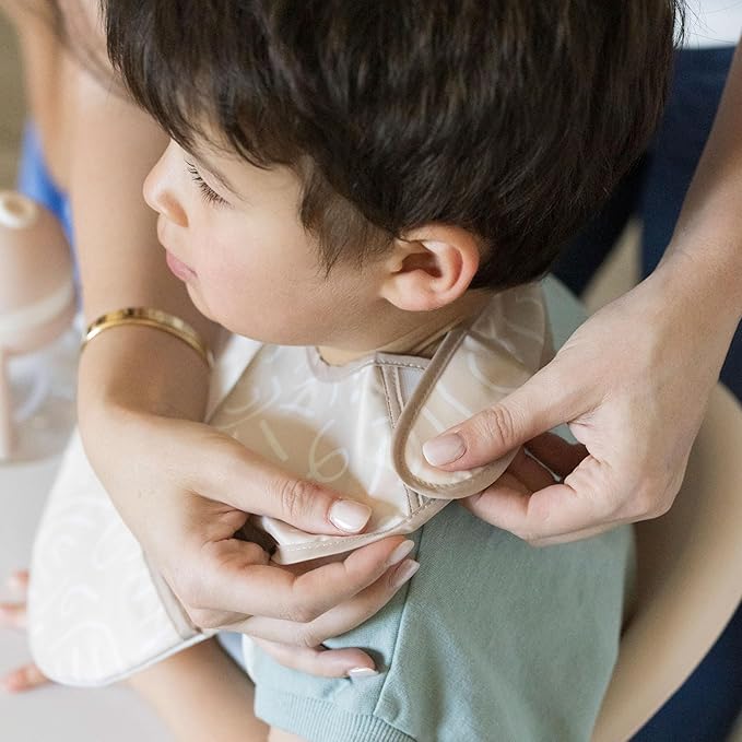 - TRAVEL MUST HAVES: Our baby feeding bib is the ultimate travel companion.Soft,lightweight and waterproof,this infant bib features a no-scratch closure that's gentle on your child.It protects clothes,floors and tables from messes.Bring your baby anywhere with confidence,knowing you've got the right toddler bib and baby smock bib for the job.