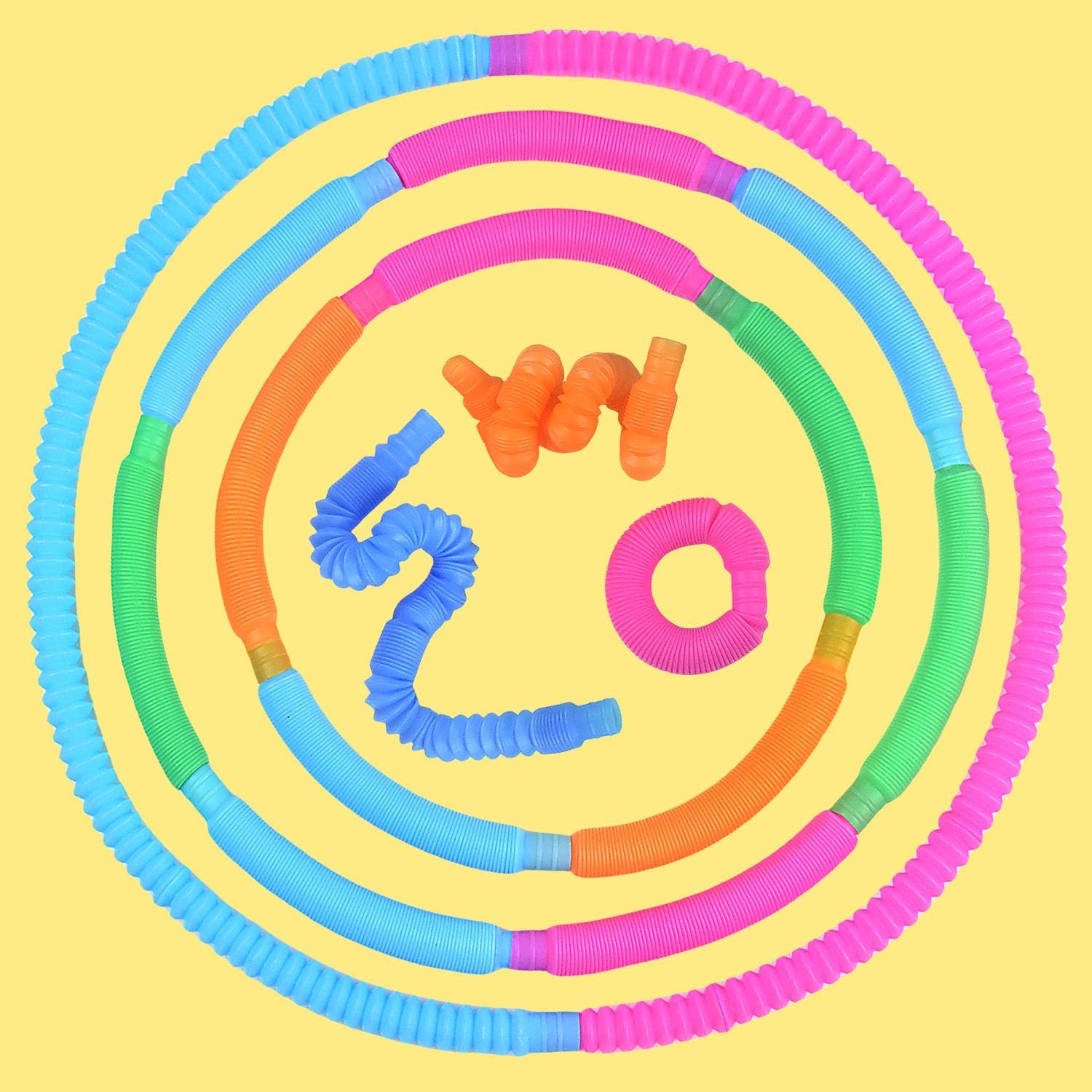 - 【Fun Pop Tubes Fidget Toys】: These sensory toys provide tactile and auditory stimulation and emit satisfactory popping sounds. The vibrant colors, smooth ridges, and satisfying crinkly noise are great. Our Pop Tubes are guaranteed to be a favorite toy in your home.