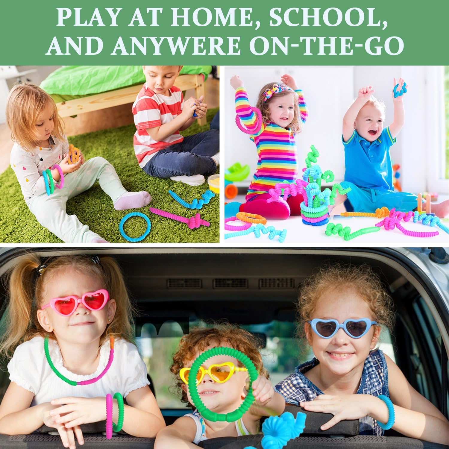 - 【Fun Children's party toys 】 These creative Pop Tubes Fidget Toys stimulate children's imagination and creativity, used as party toys for boys and girls, Easter basket stuffing, goodie bag stuffers, and Pinata stuffing, and Perfect gift for children aged 1 2 3 4 5 6-12!