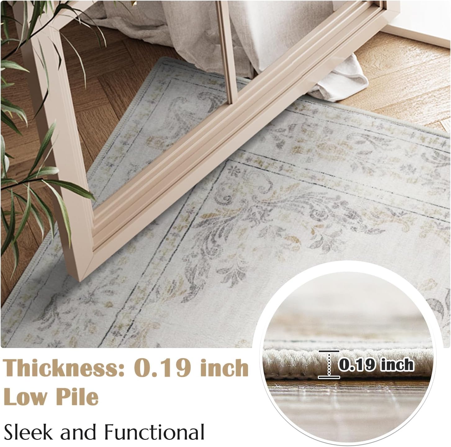 jinchan Vintage Floral Runner Rug 2x5 - Machine Washable Distressed Design Non-Slip Low-Pile Soft Thin Carpet for Hallway Kitchen Farmhouse Bedroom Entryway Laundry Room (2x5ft,Light Grey)