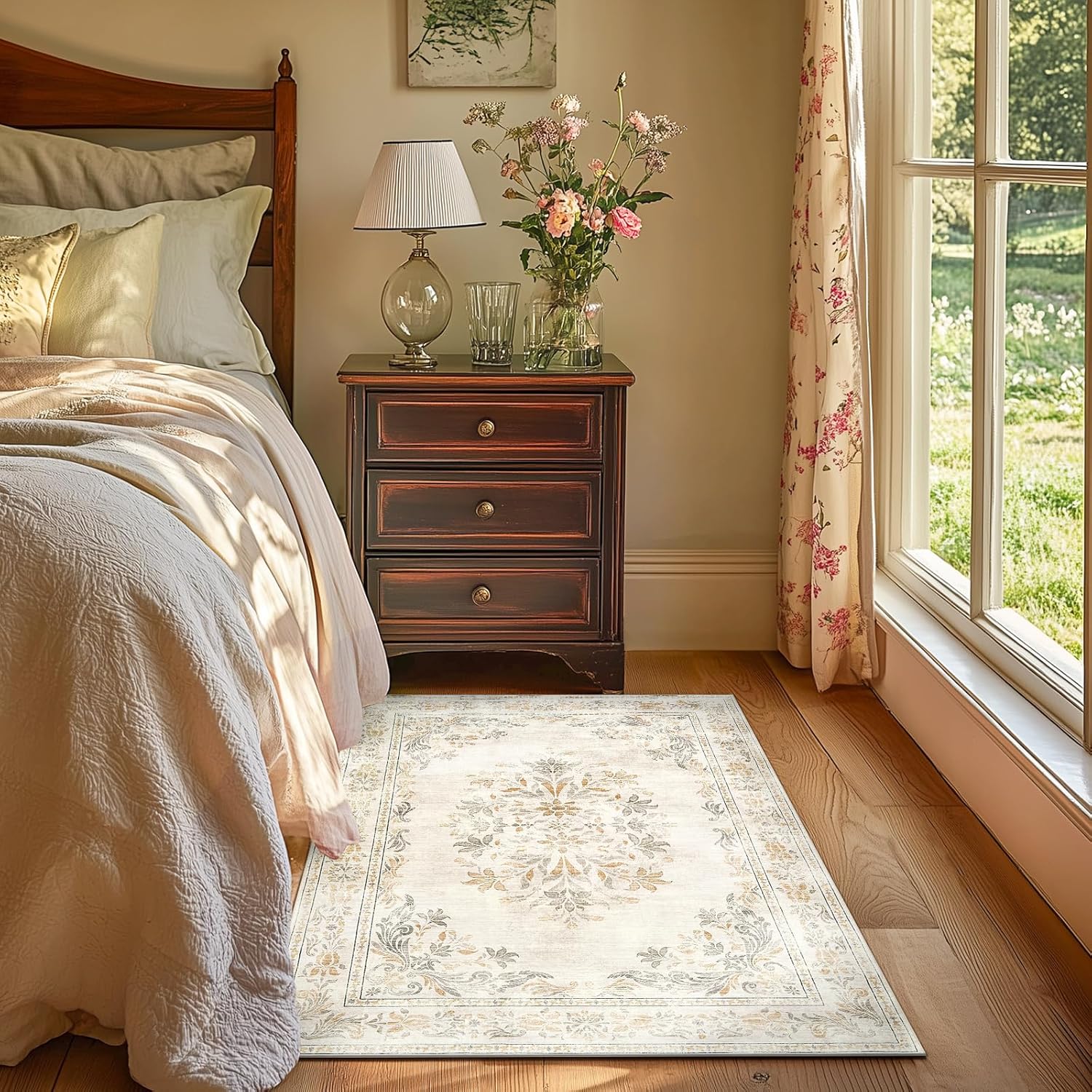 - Floral Vintage Design: Our rug features a stunning floral medallion design, adding a touch of elegance and sophistication to any room. The floral patterns and traditional border will enhance any room's aesthetic