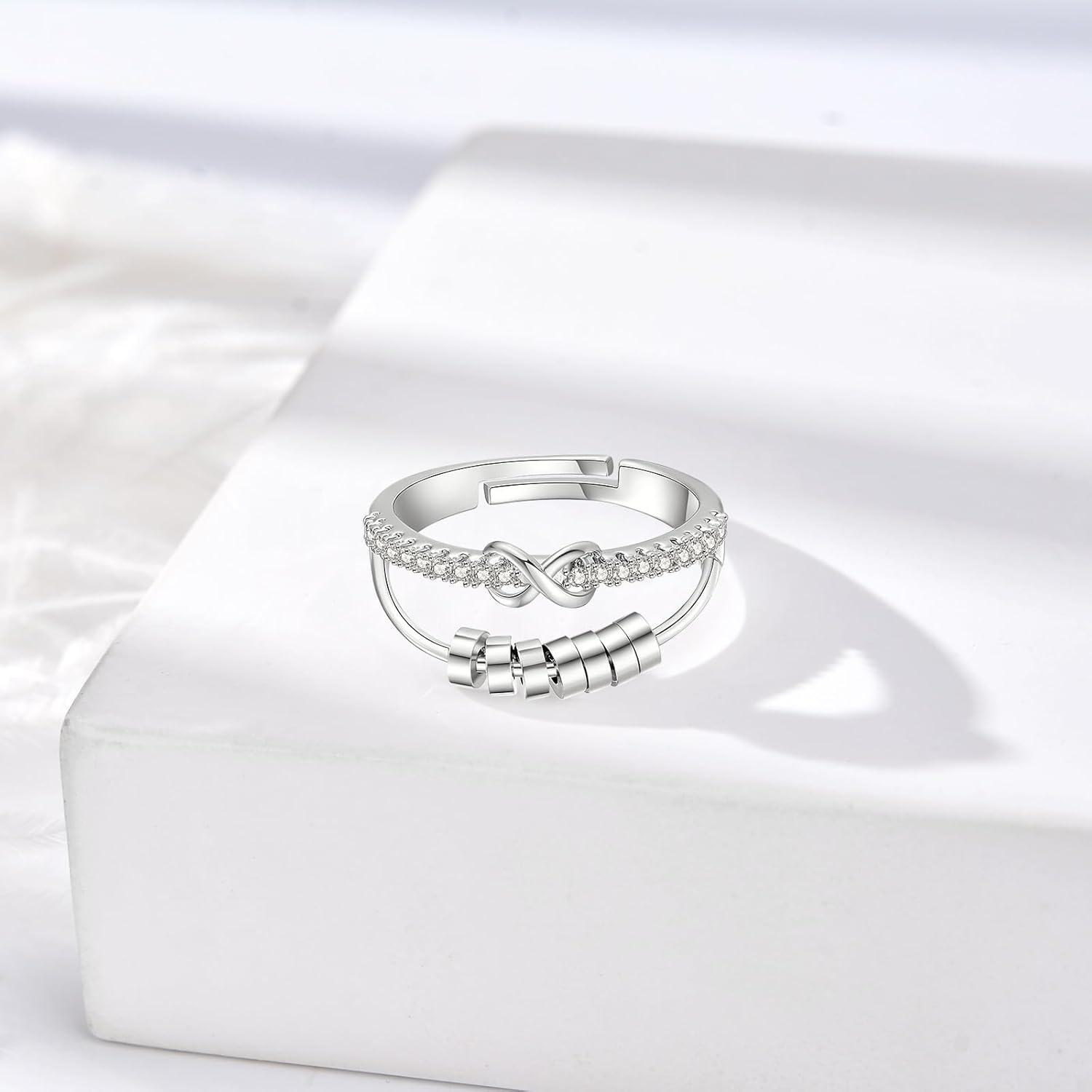 INFUSEU Funny Spinner Fidget Rings for Women Girls Anti Anxiety Stress Worry, Adjustable Size