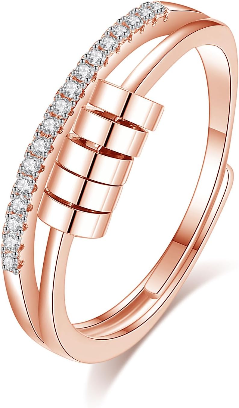 INFUSEU Funny Spinner Fidget Rings for Women Girls Anti Anxiety Stress Worry, Adjustable Size