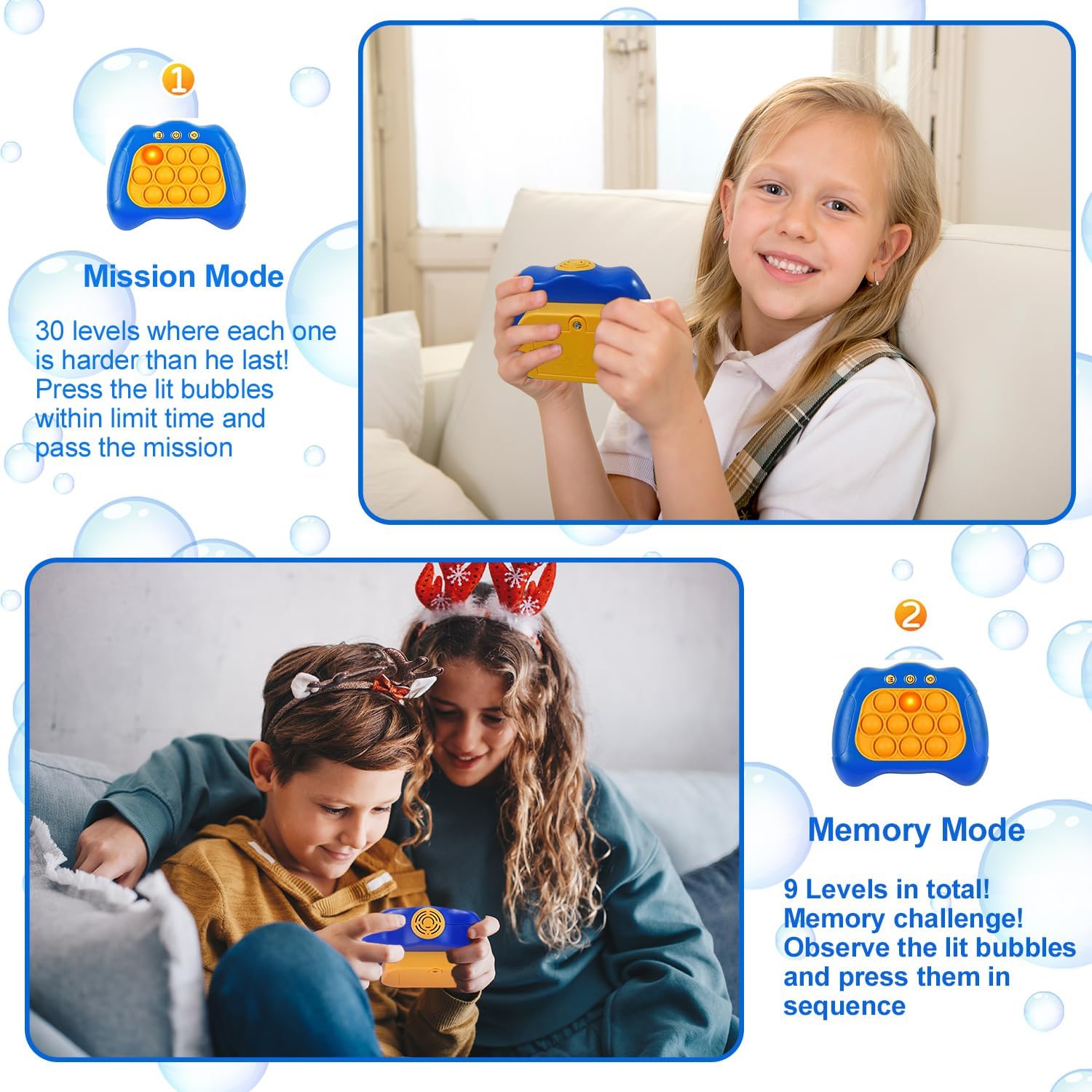 Quick Push Puzzle Game Machine Pop Fidget Light-Up Squeeze Poppet Sensory Toy Educational Push Pop Bubble Toy Stress Relief Party Favors Puzzle Game for Kids Teens Adults (Blue)
