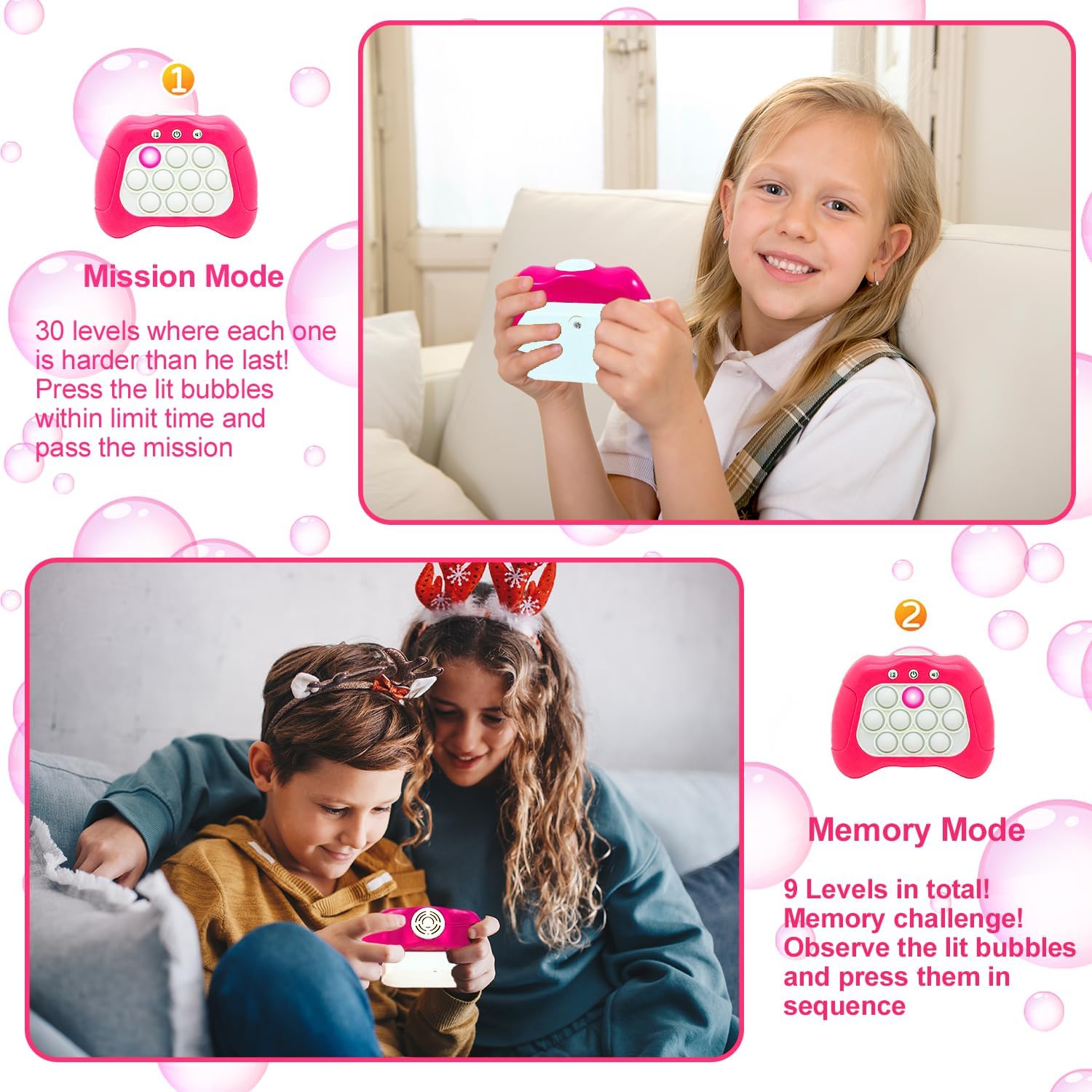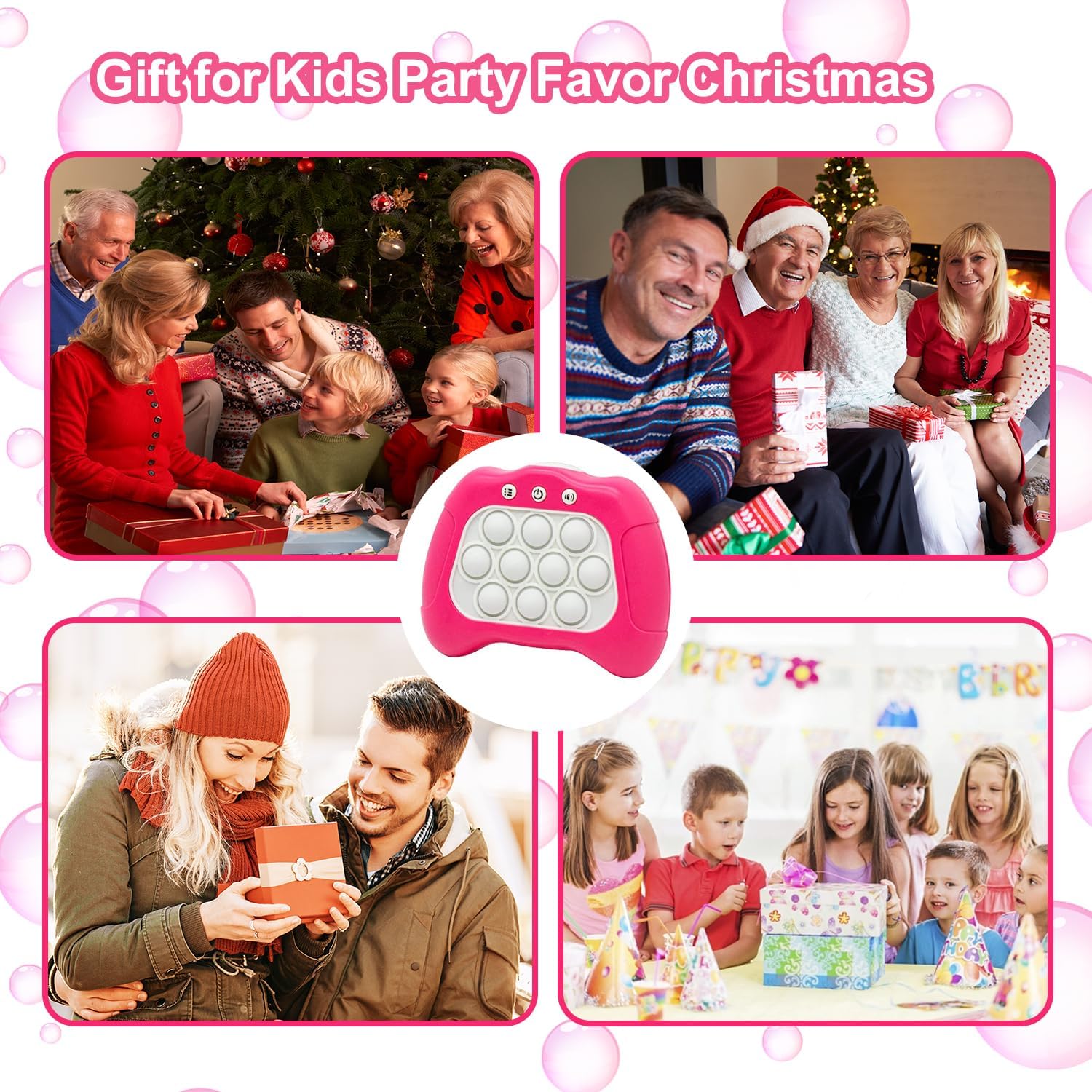 Quick Push Puzzle Game Machine Pop Fidget Light-Up Squeeze Poppet Sensory Toy Educational Push Pop Bubble Toy Stress Relief Party Favors Puzzle Game for Kids Teens Adults (Pink)