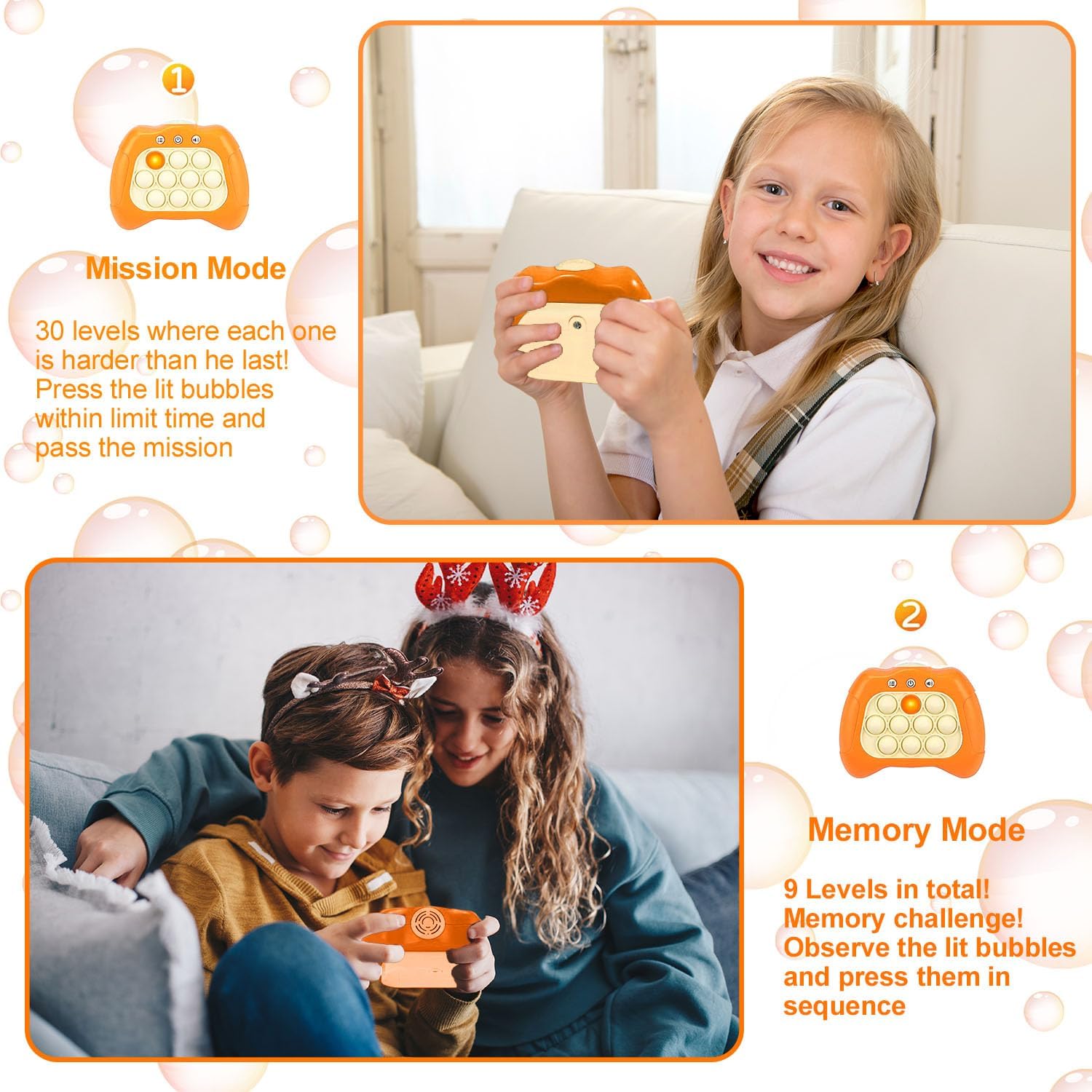 Quick Push Puzzle Game Machine Pop Fidget Light-Up Squeeze Poppet Sensory Toy Educational Push Pop Bubble Toy Stress Relief Party Favors Puzzle Game for Kids Teens Adults (Orange)