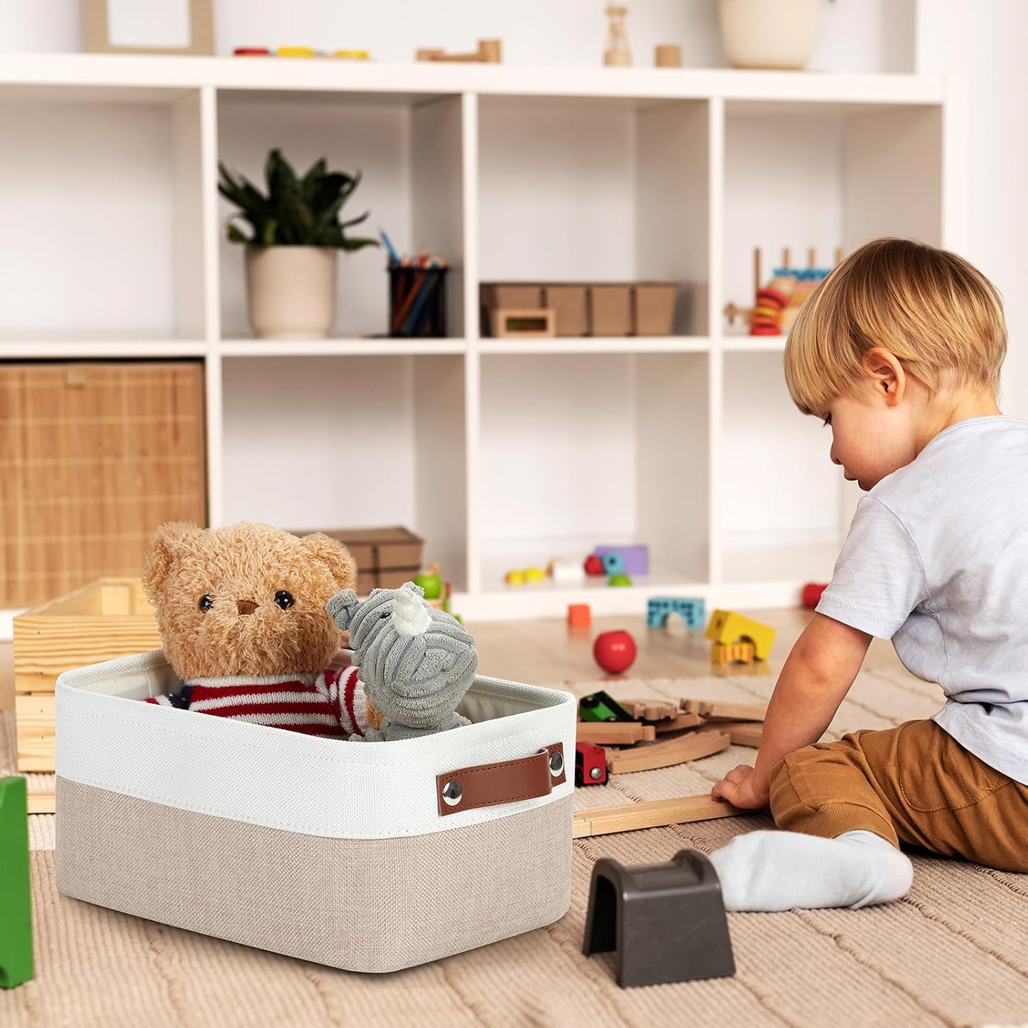 DULLEMELO Collapsible Fabric Storage Bins - Set of 2, 11.8x7.9x5.1 Inch, White & Khaki
