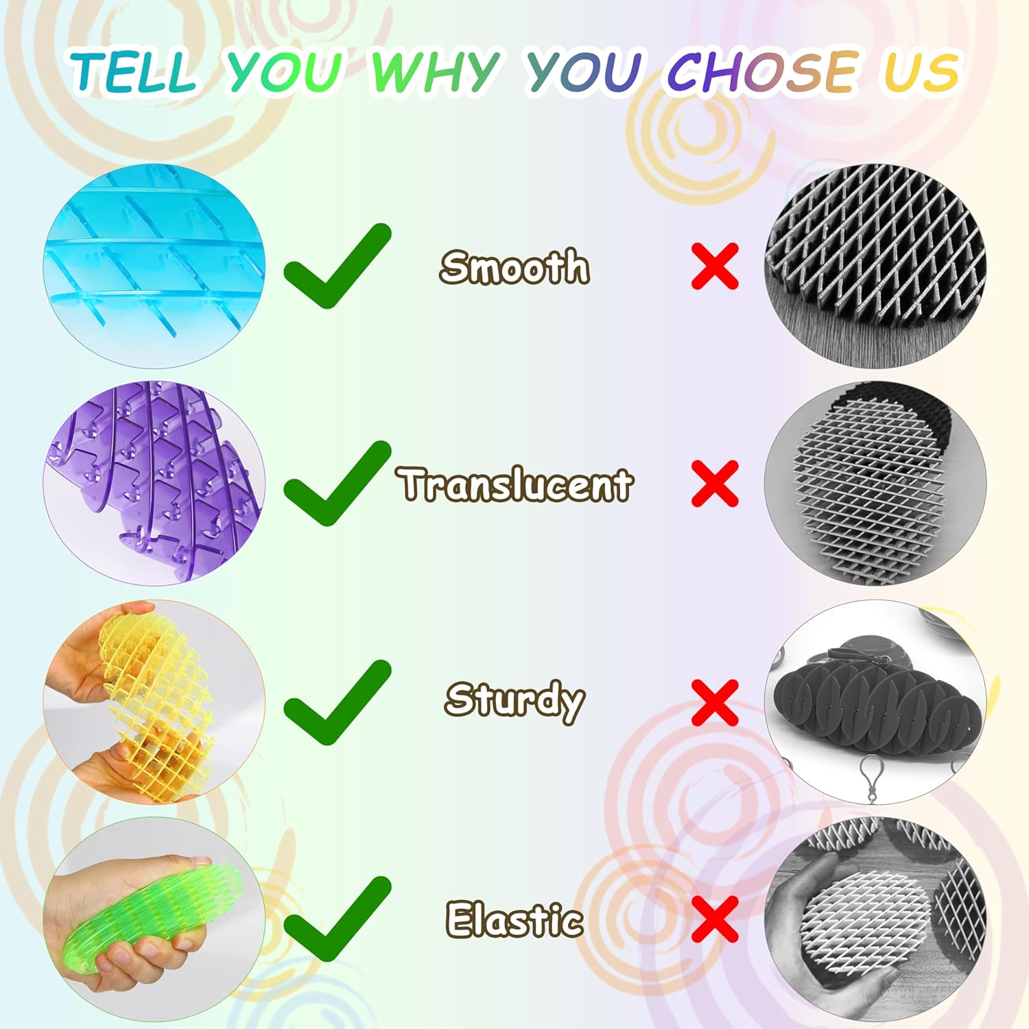 - 【Flexible to Expand】Worm Fidget Toy made from elastic plastic,Embrace the endless possibilities with its ellipsoid shape, allowing you to bend and twist in any direction. It stretches, collapses, and accordions. bends, flexes, and extends to accommodate your unique fidgeting preferences.
