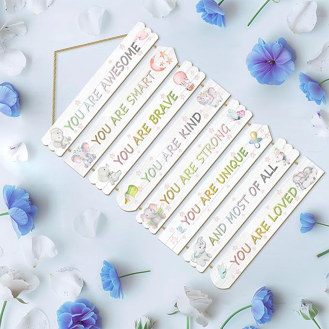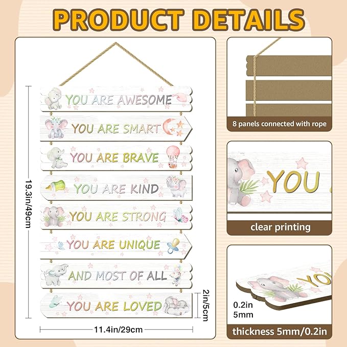 - Elephant Decorations: This Elephant wall decor sign is an ideal addition to kids' room decor. Each plaque features a different elephant patterns, lets kids know about elephant which are educational, and the 8 motivational warming words can help boost children's self-confidence