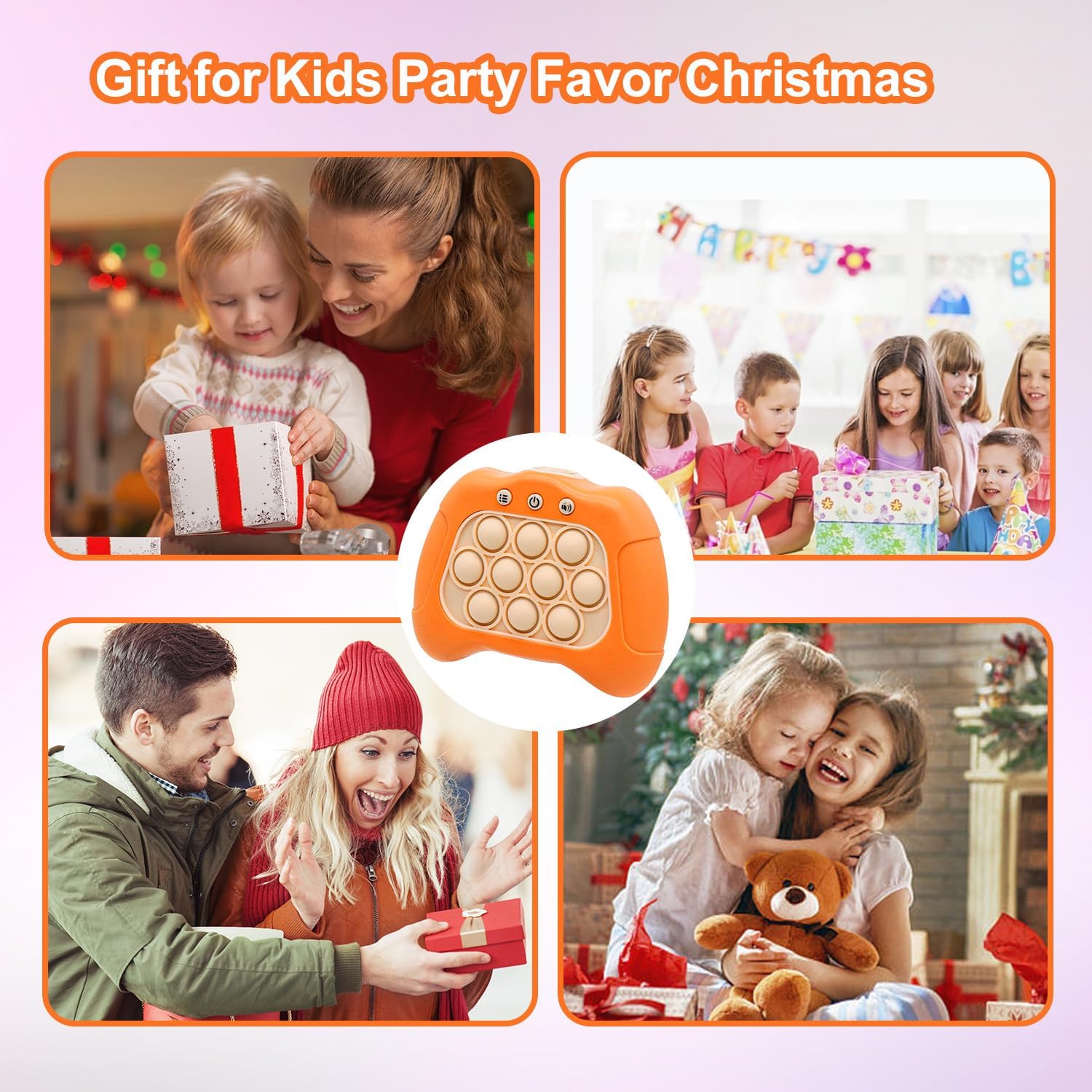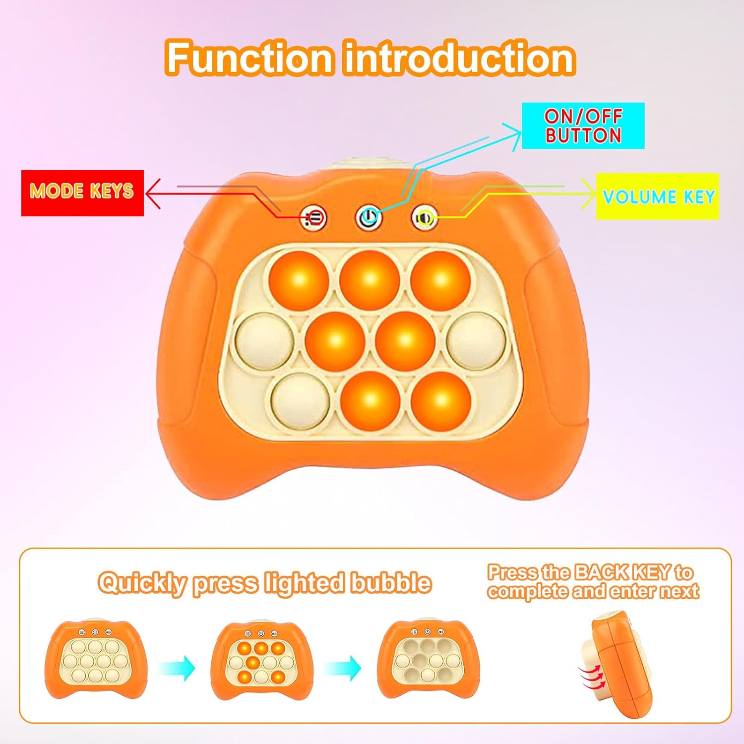 Quick Push Puzzle Game Machine Pop Fidget Light-Up Squeeze Poppet Sensory Toy Educational Push Pop Bubble Toy Stress Relief Party Favors Puzzle Game for Kids Teens Adults (Orange)