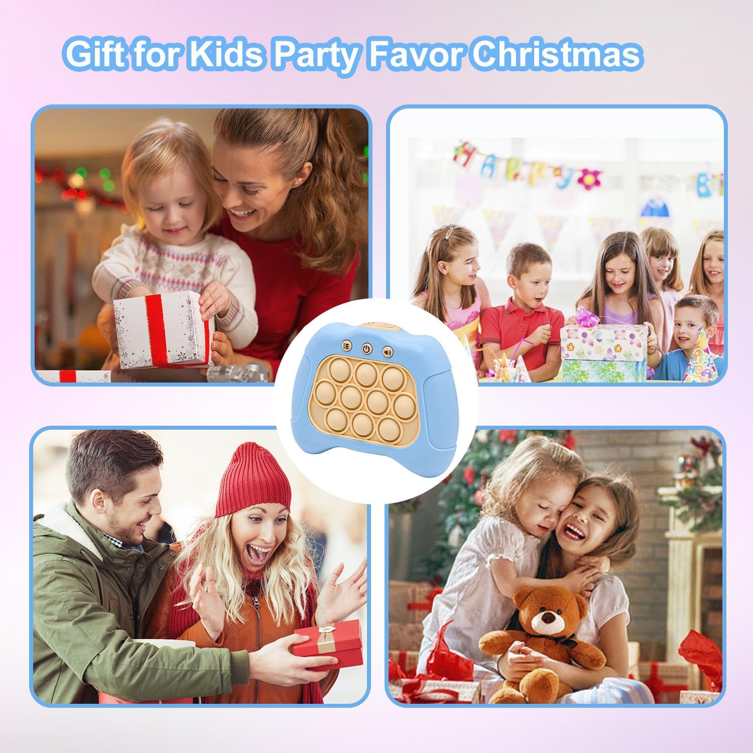 Quick Push Puzzle Game Machine Pop Fidget Light-Up Squeeze Poppet Sensory Toy Educational Push Pop Bubble Toy Stress Relief Party Favors Puzzle Game for Kids Teens Adults (Baby Blue)