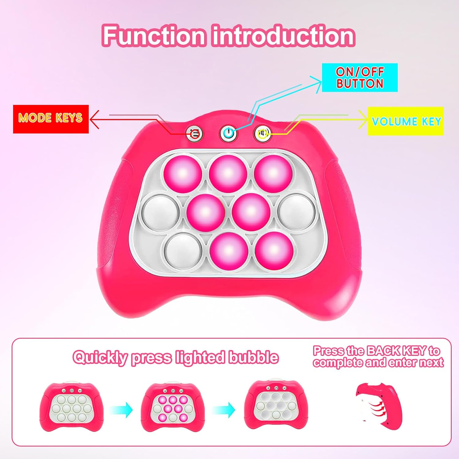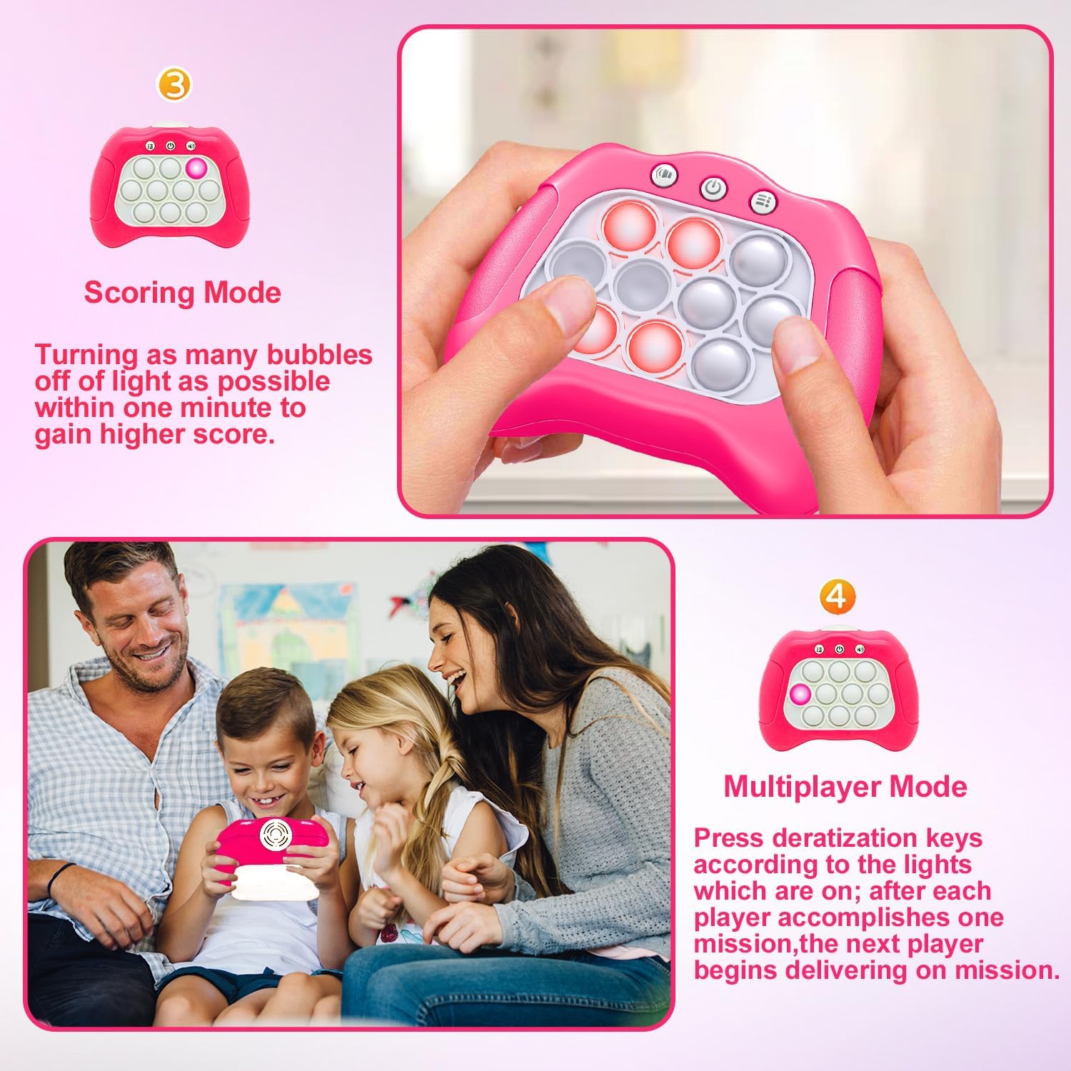 Quick Push Puzzle Game Machine Pop Fidget Light-Up Squeeze Poppet Sensory Toy Educational Push Pop Bubble Toy Stress Relief Party Favors Puzzle Game for Kids Teens Adults (Pink)