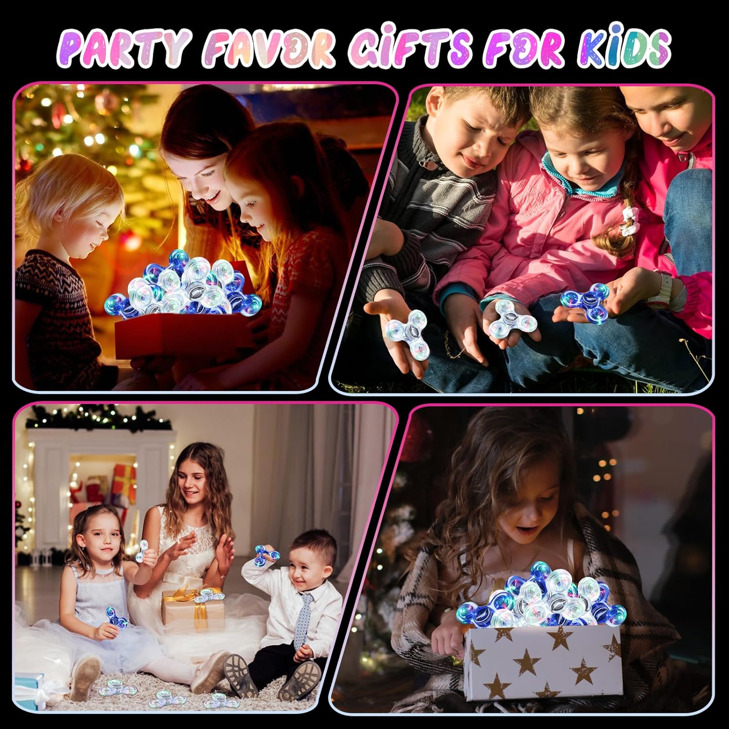 - GREAT GIFT CHOICE FOR KIDS: SCIONE LED fidget spinner toys make top party favor goody bags, Halloween gift baskets stuffer for kids, pinata fillers, glow in the dark party favors gifts, valentines day idea gift, easter basket stuffers for kids, Christmas stocking stuffers or surprise birthday gift for kids. Great gift or stocking stuffer and return gift,graduation gift.