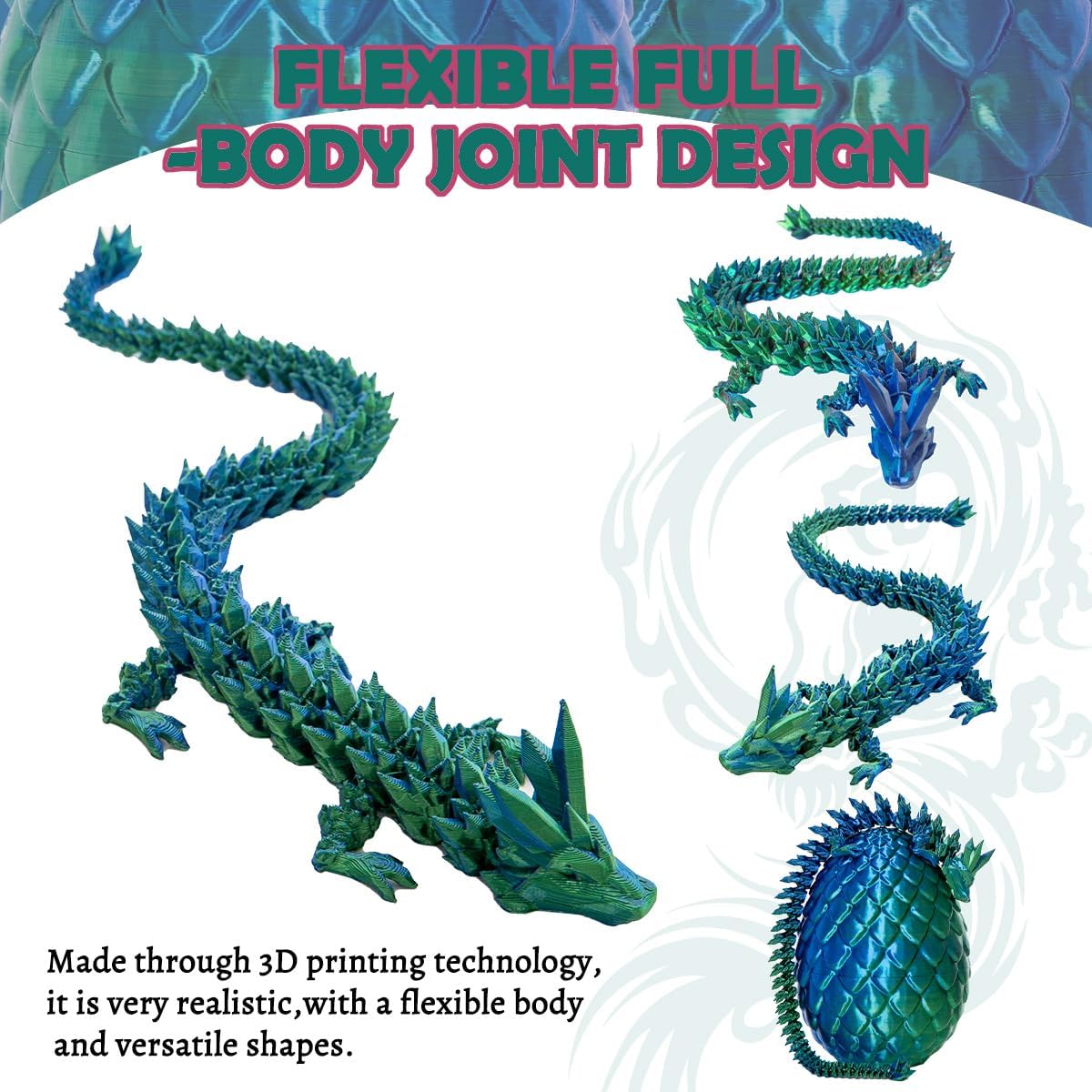 3D Printed Dragon Eggs with Dragon Inside, 12In Laser Blue Green Dragon Egg Fidget Toy, Executive Desk Articulated Dragon Toy, Home Office Decor