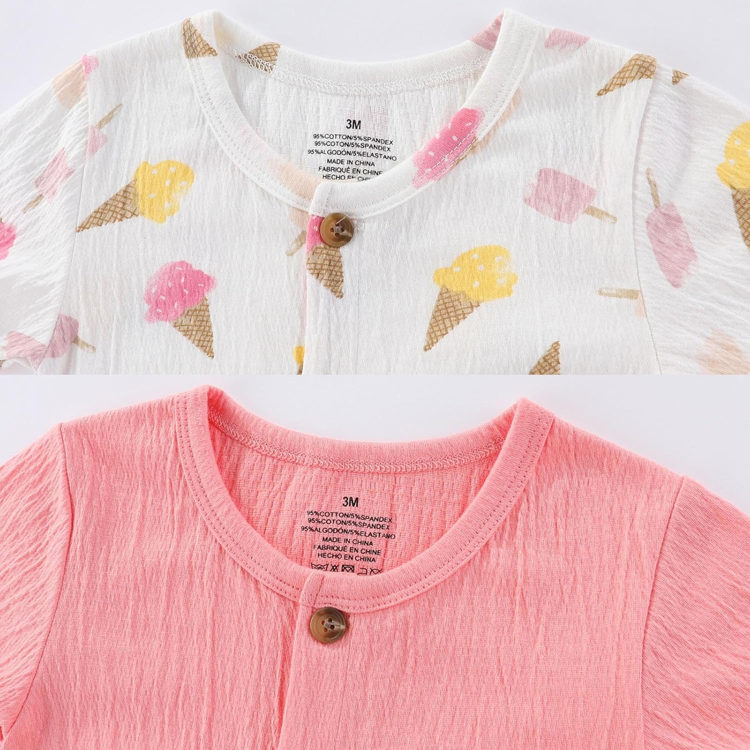 Baby Girl Romper Button Jumpsuit Summer Infant Boy Clothes for 0-24 Months