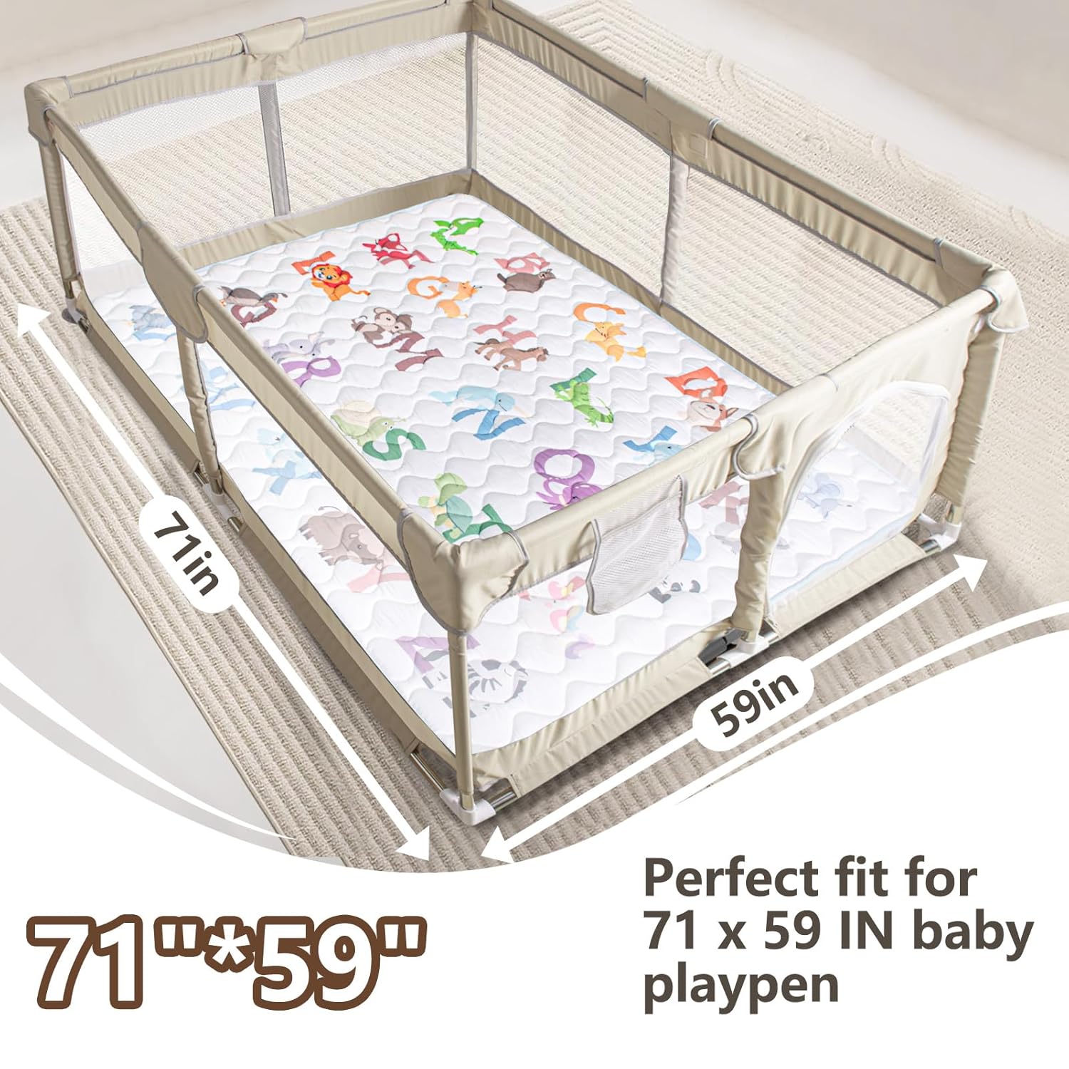 - [Expansive Play Area]: With dimensions of 71x59 inches, our play mat offers a vast space for your little one to explore and enjoy. Much larger than standard 50x50 mats, it's ideal for creating a comfortable and spacious play zone for your baby's activities
