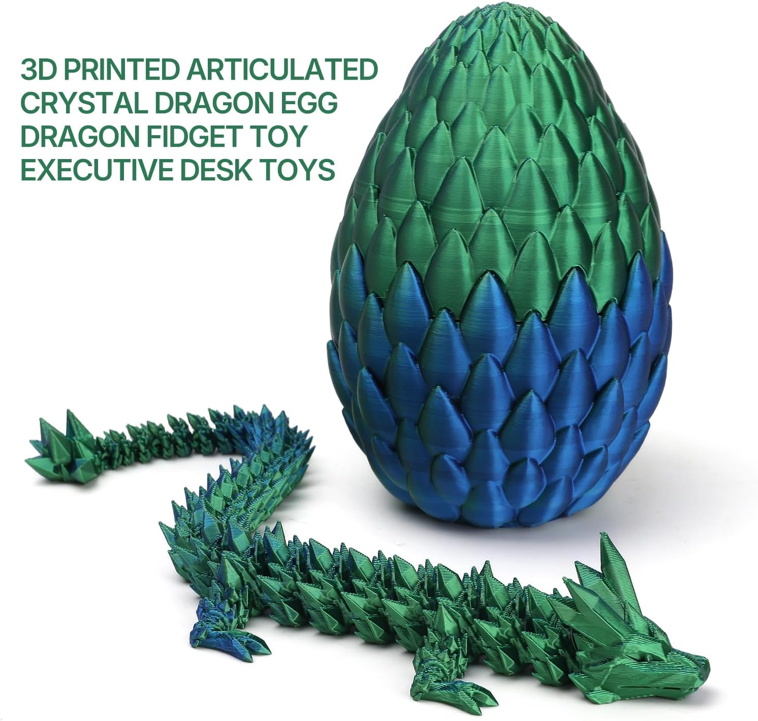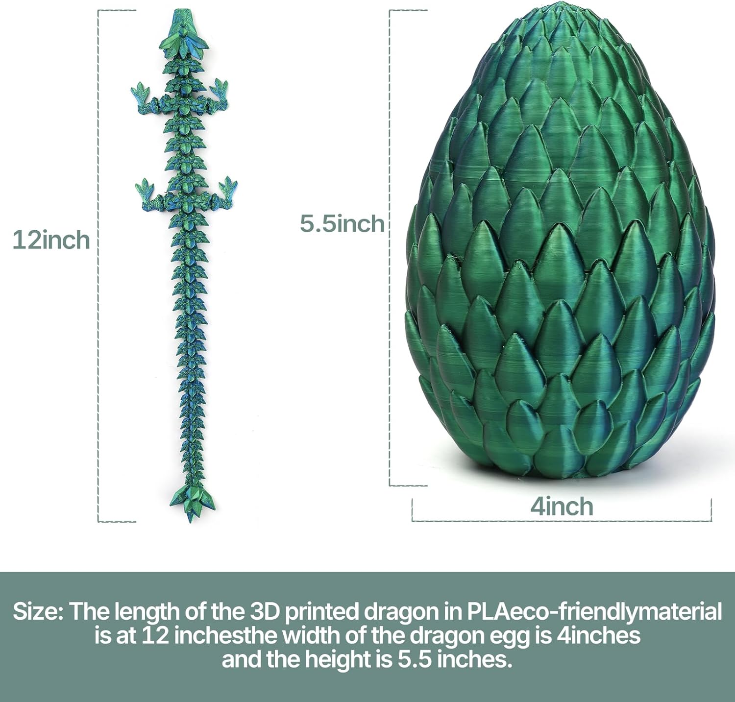 • Note:Multicolored dragons may vary in color pattern from photos due to the nature of the PLA filament when 3D printed. Includes a 12‘’articulated crystal dragon and a 5.5‘’dragon egg.