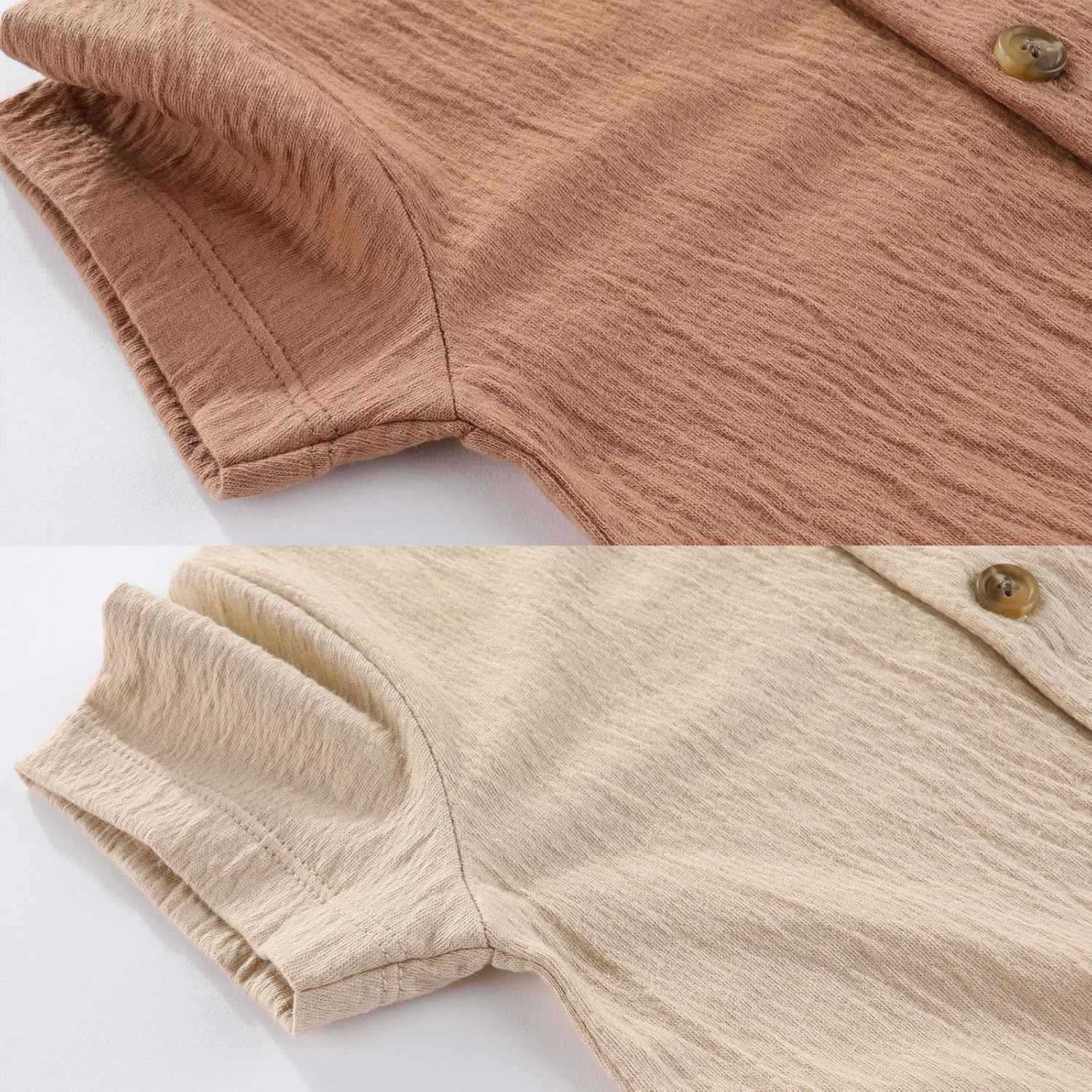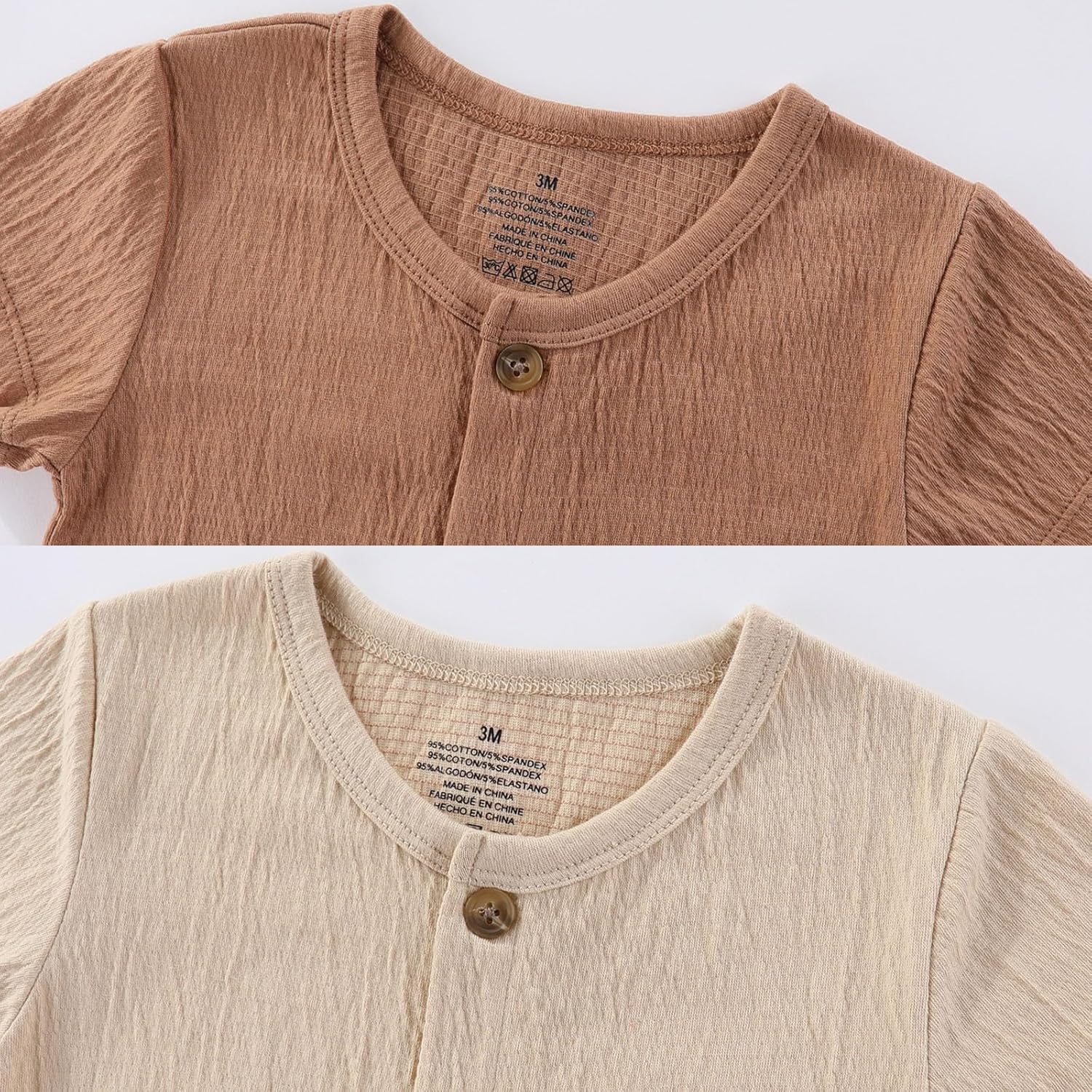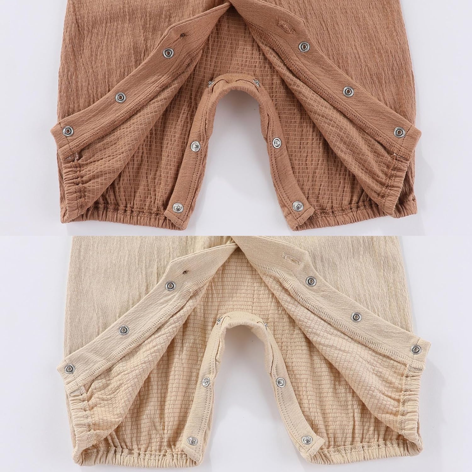 • Fabric Features: the surface forms uniform wrinkles, the pleats make the romper look natural and stylish. The fabric of crape is extremely breathable and has a certain degree of elasticity. Suitable for baby to wear in spring, summer and fall