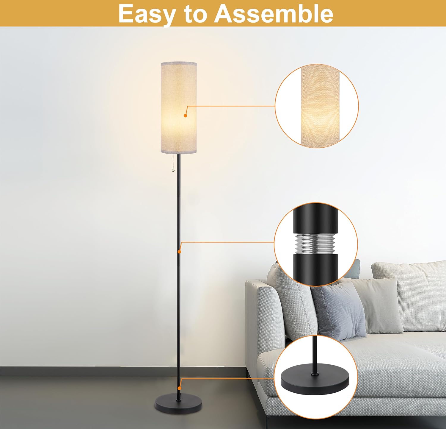 Floor Lamp for Living Room, Modern Standing Lamps with Lampshade, Minimalist Tall Lamp with Chain Switch for Living Room, LED Bulb Included (Gray Shade)