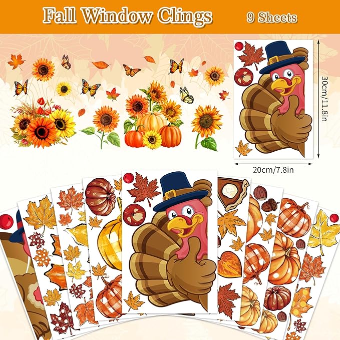 - Wide Range of Use - The static window clings are suitable for all kinds of fall theme party, such as Thanksgiving Day party, birthday party, family gathering, etc,..and also can be used as a special gifts with your friends.