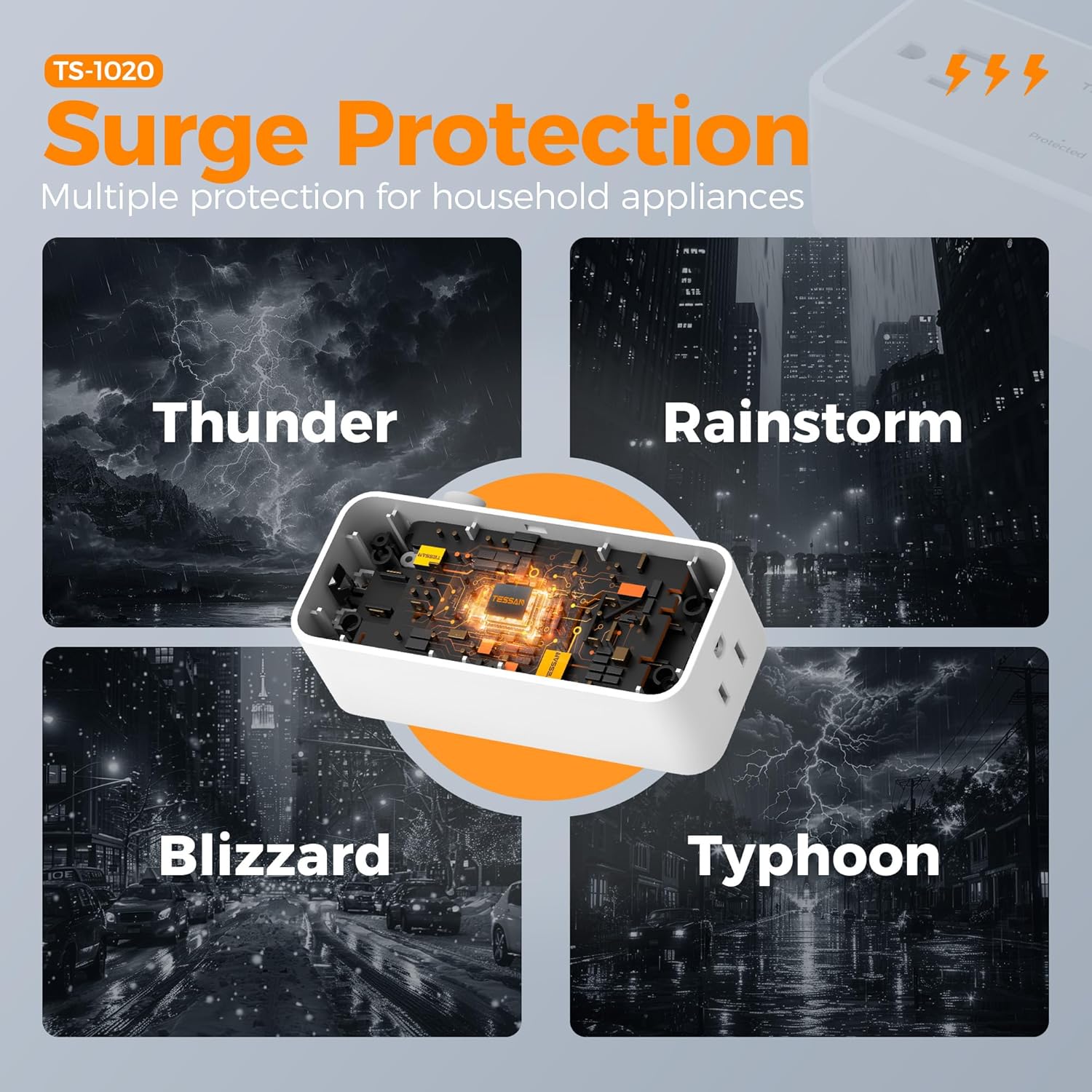- Surge Protector Outlet: Equipped surge protection 900J can protect your home/ office electronics from surges and spikes disturbances, providing you with a safe and reliable charging environment