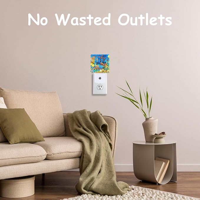 - Dusk to Dawn Sensor:This Underwater Fishes Coral night light plug wall is equipped with a light sensor that automatically turns on at dusk or dim light and turns off at dawn or when there is sufficient light.Its smart design saves power and eliminates the need for manual switching